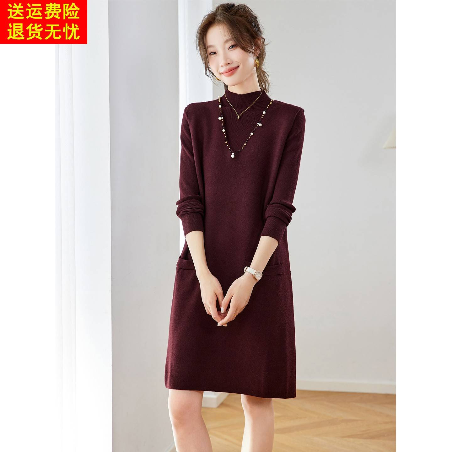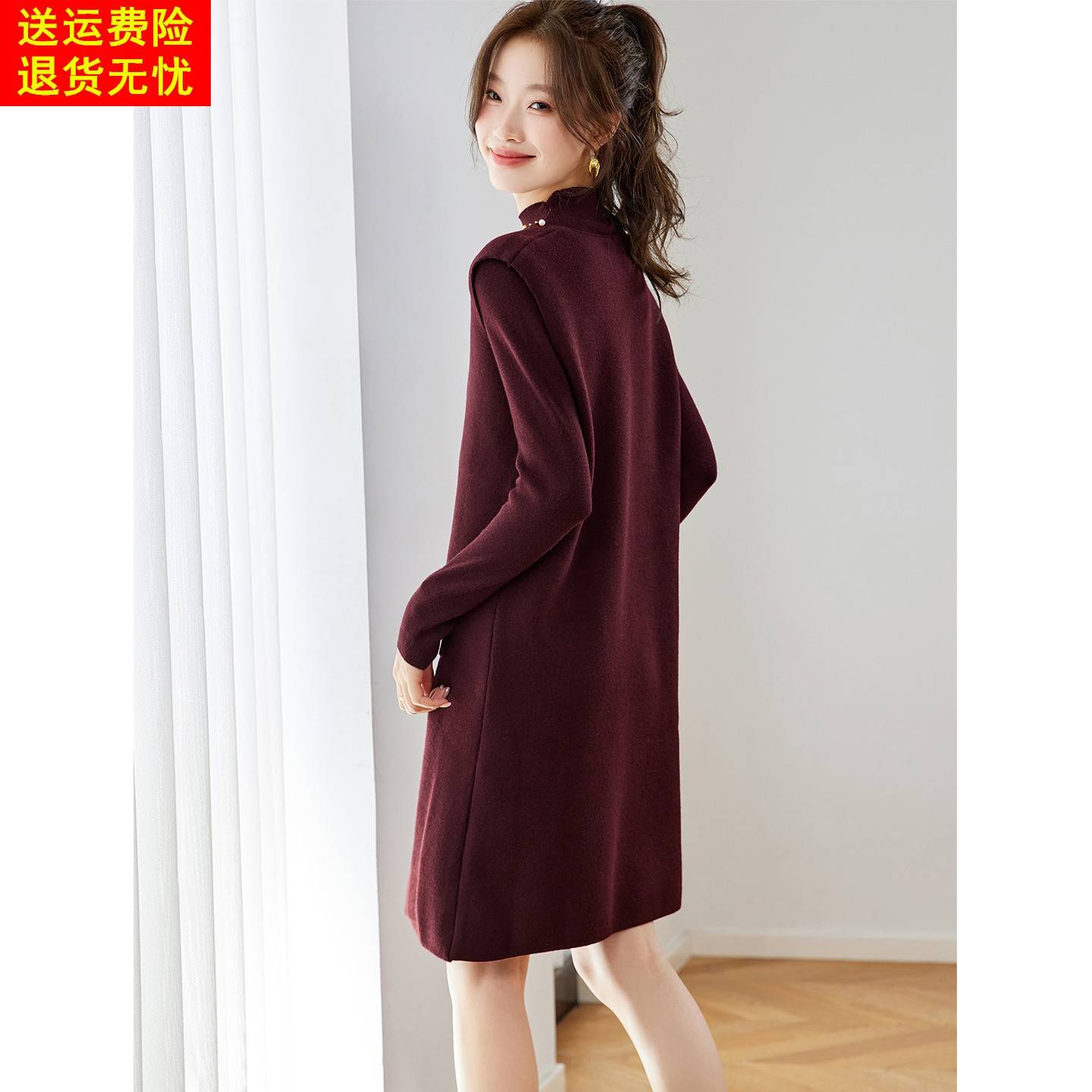 两件套钉珠半高领针织连衣裙女秋冬2025新款小个子显瘦打底毛衣裙