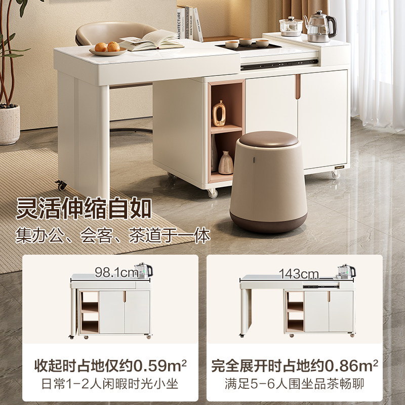 全友家居茶桌茶台钢化玻璃可伸缩
