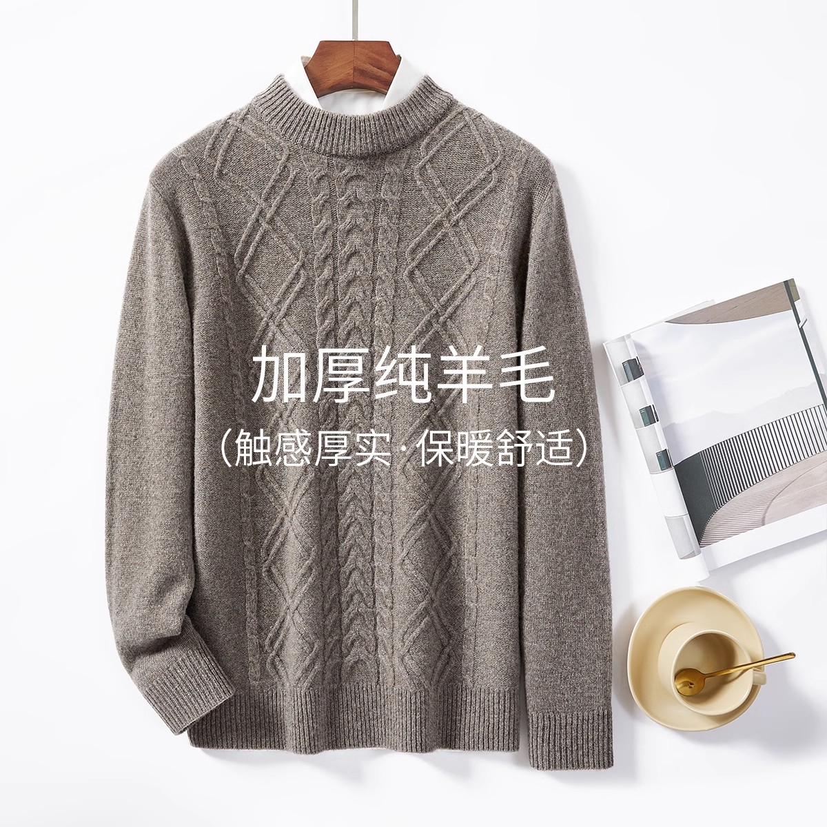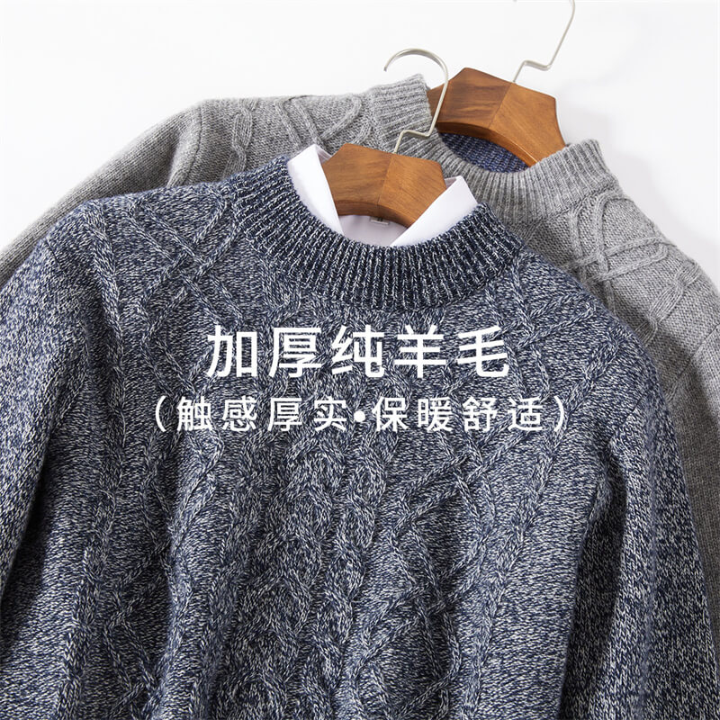 【100纯羊毛】男式加厚羊毛衫金菊2025秋冬新款圆领毛衣保暖上衣
