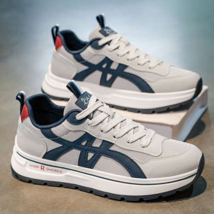 男鞋2025新款秋季青少年跑步运动鞋网面透气轻便休闲增高老爹潮鞋