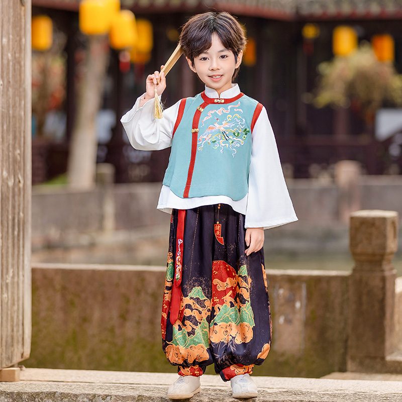 儿童新款古装春秋季国学男孩改良新中式套装宝宝唐装古装儿童演出