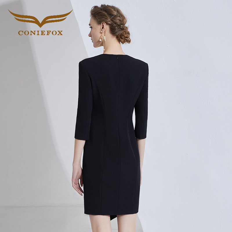 创意狐黑色名媛气质连衣裙