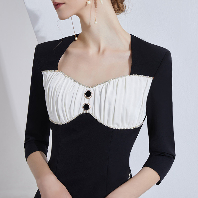 创意狐黑色连衣裙女名媛气质晚宴会主持人小礼服平时可穿轻奢高端