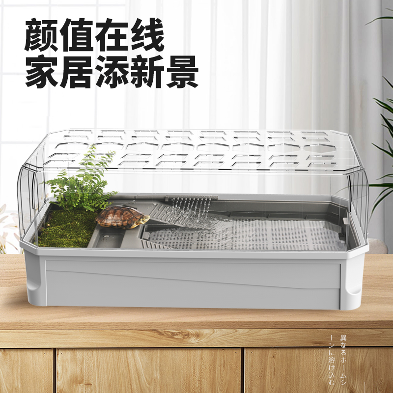 乌龟缸带晒台生态造景别墅家用养乌龟专用缸巴西草龟鳄龟饲养箱屋