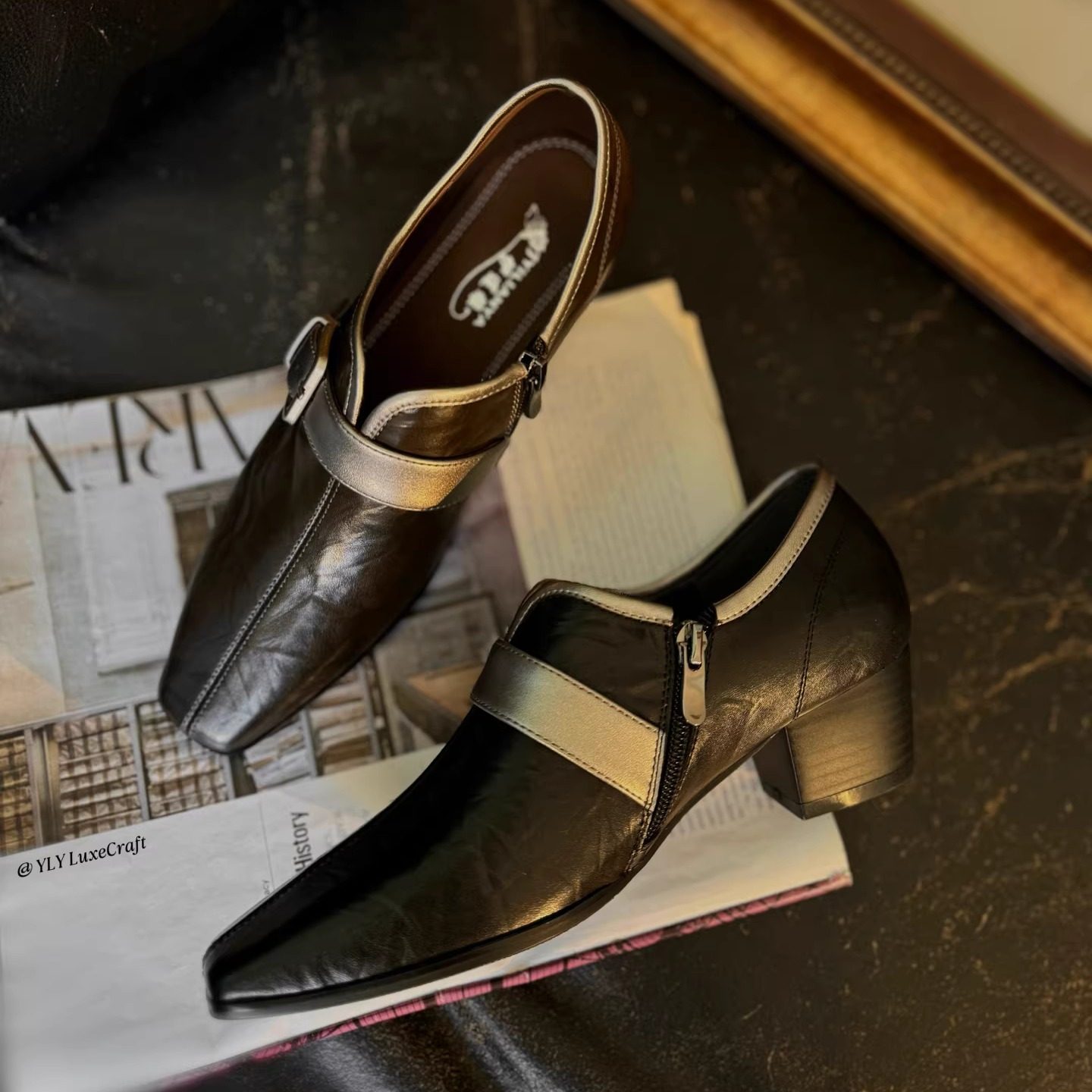 2109-3春季新款时尚拼色中跟深口单鞋女复古方头粗跟小皮鞋大码