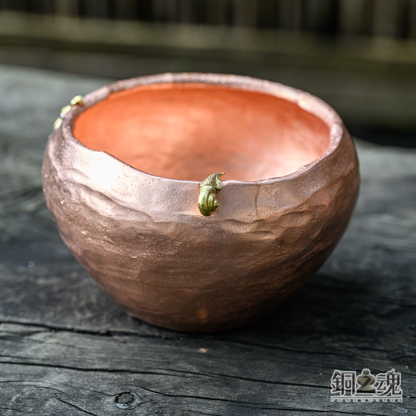 紫铜茶洗大号手工锤目纹茶洗杯碗复古水盂茶水缸禅意建水废水洗笔