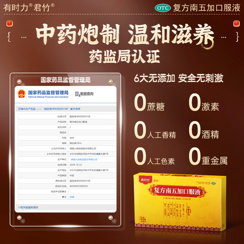 有时力复方南五加口服液补肾补气安神补脑液改善睡眠心悸头晕气短
