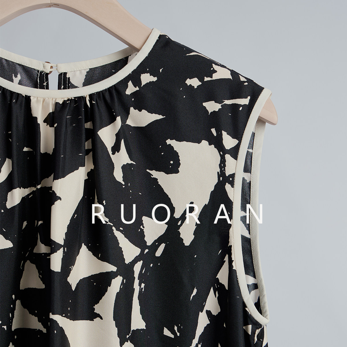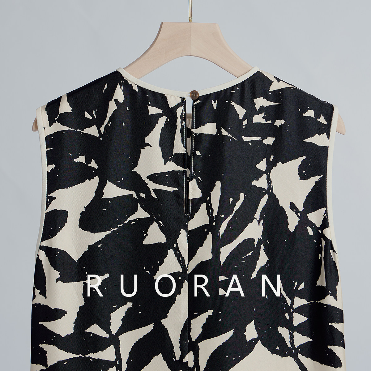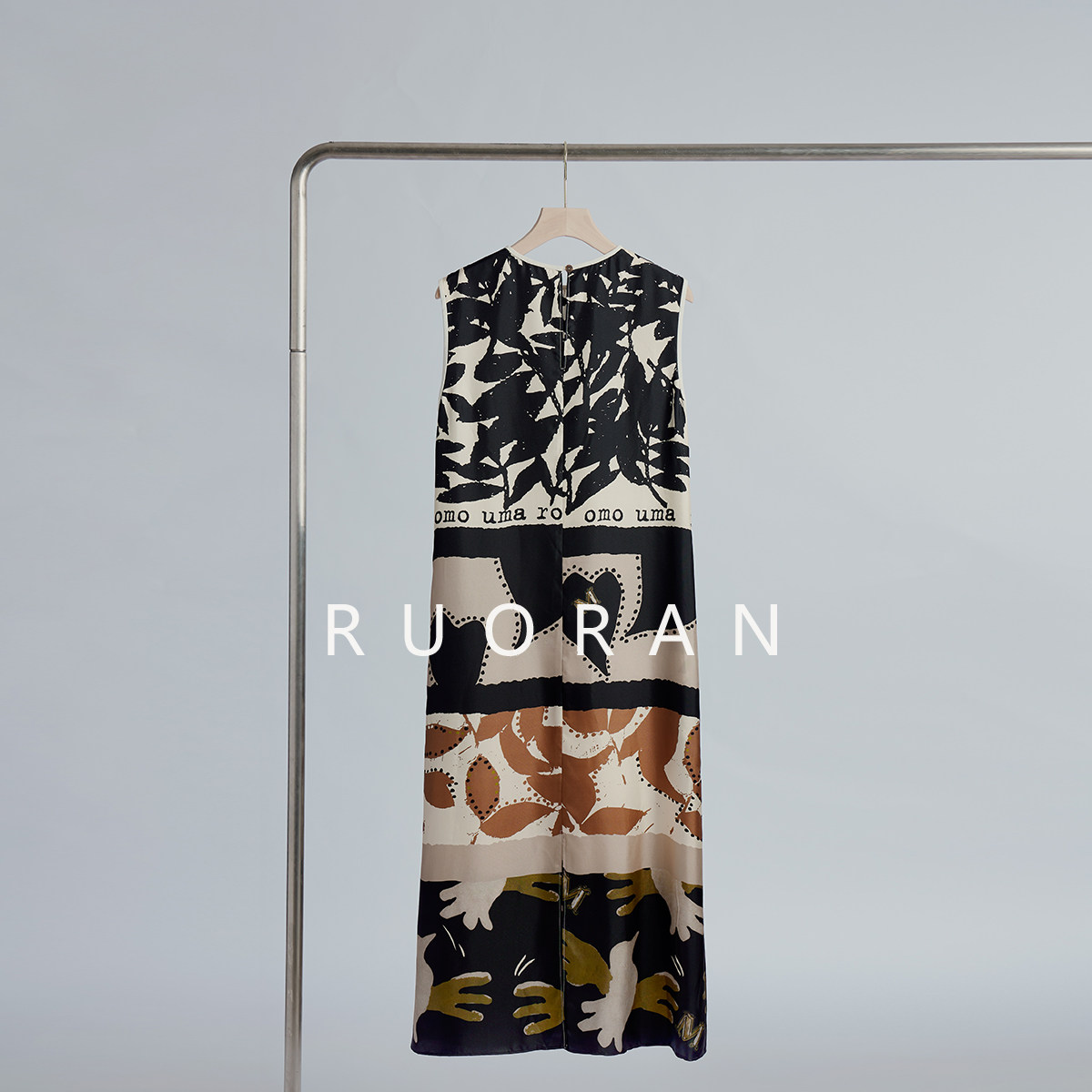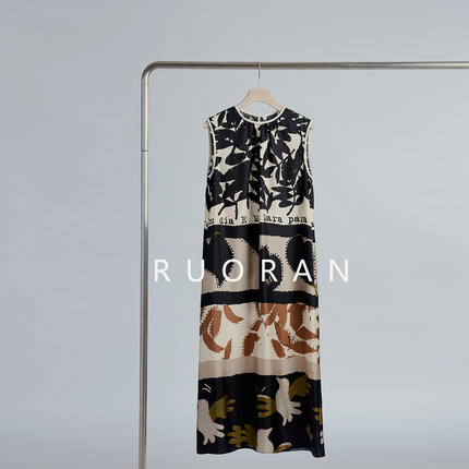 RUORAN 意式慵懒时髦大气艺术感印花春夏新款真丝桑背心连衣裙女