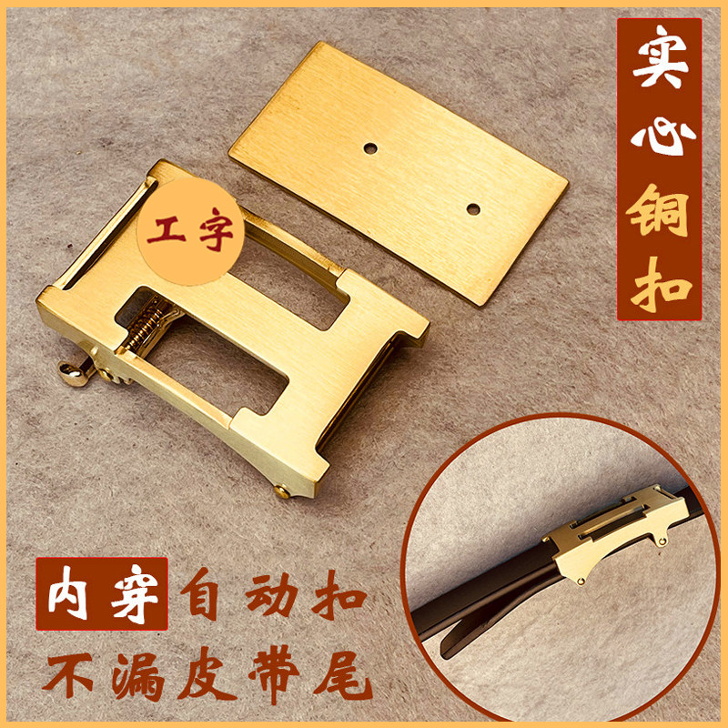 内穿自动扣皮带扣头纯3.5男实心黄铜卡槽H字母裤卡子高档腰带配件
