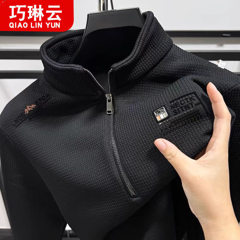 巧琳云潮男卫衣新款华夫格时尚帅气立领半拉链卫衣秋冬季保暖长袖