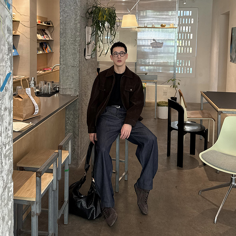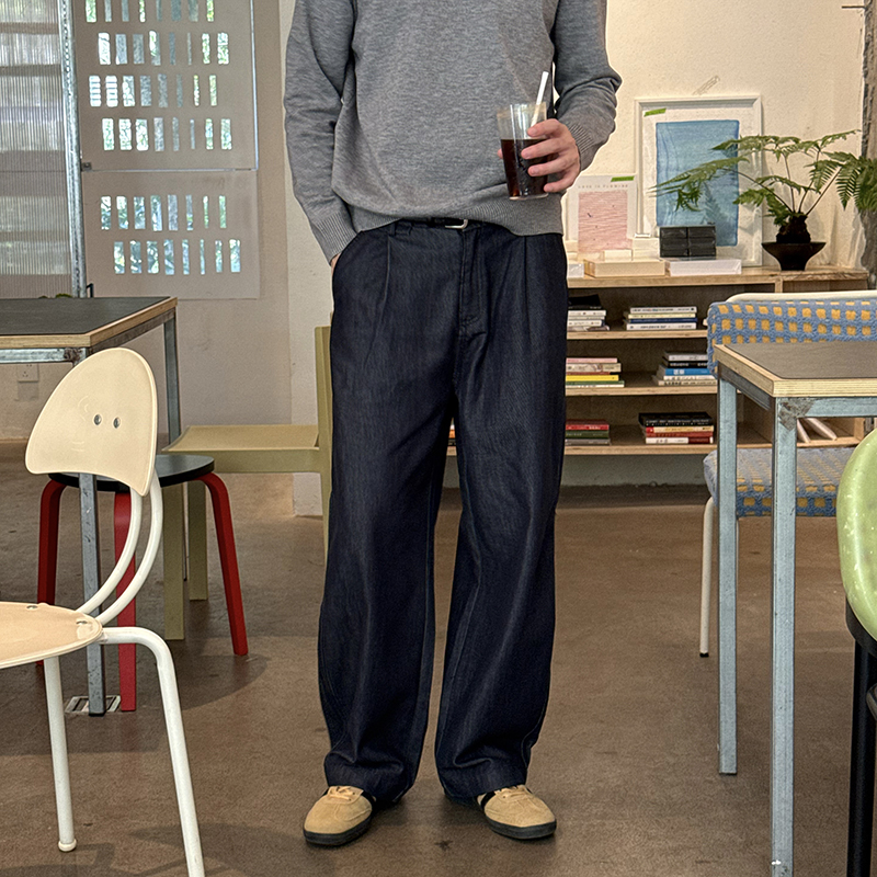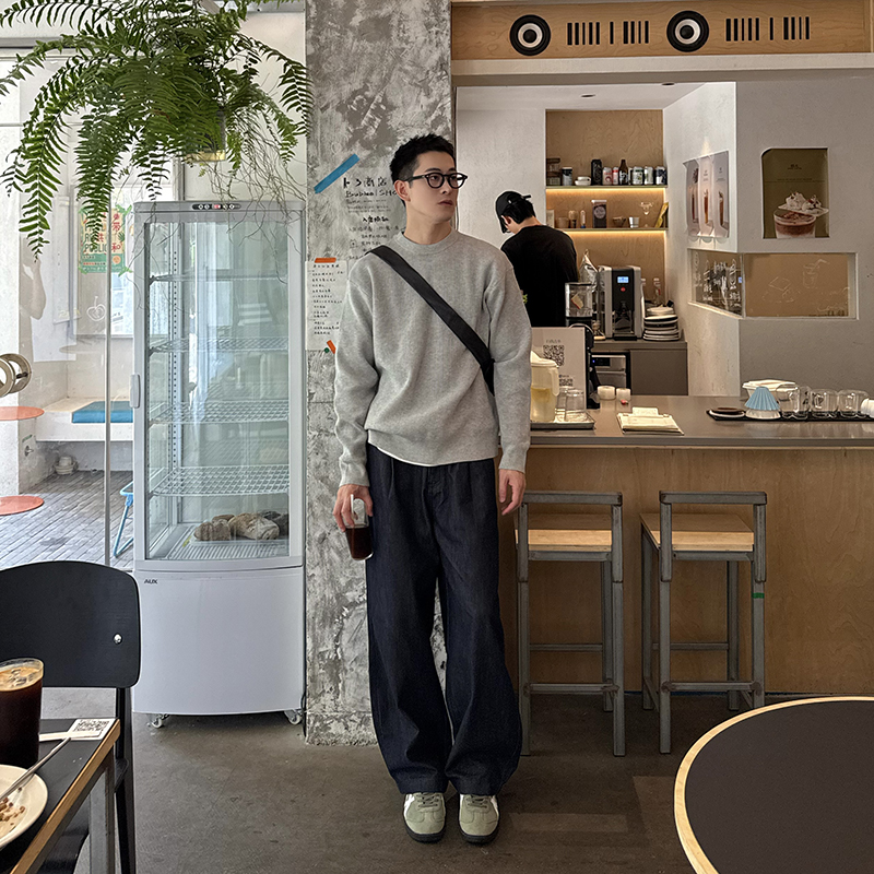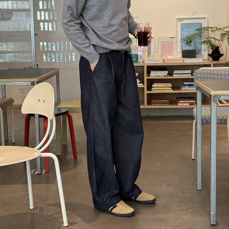 Nick Tian 深蓝色松紧带直筒牛仔裤男秋冬新款韩系宽松长裤休闲裤