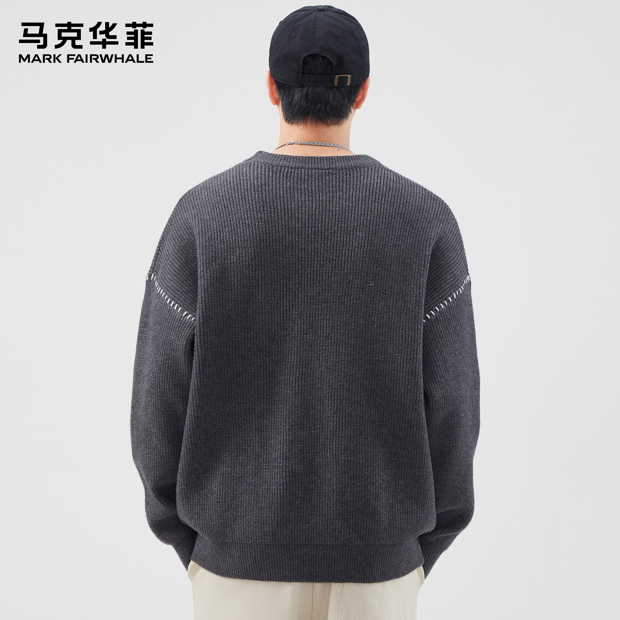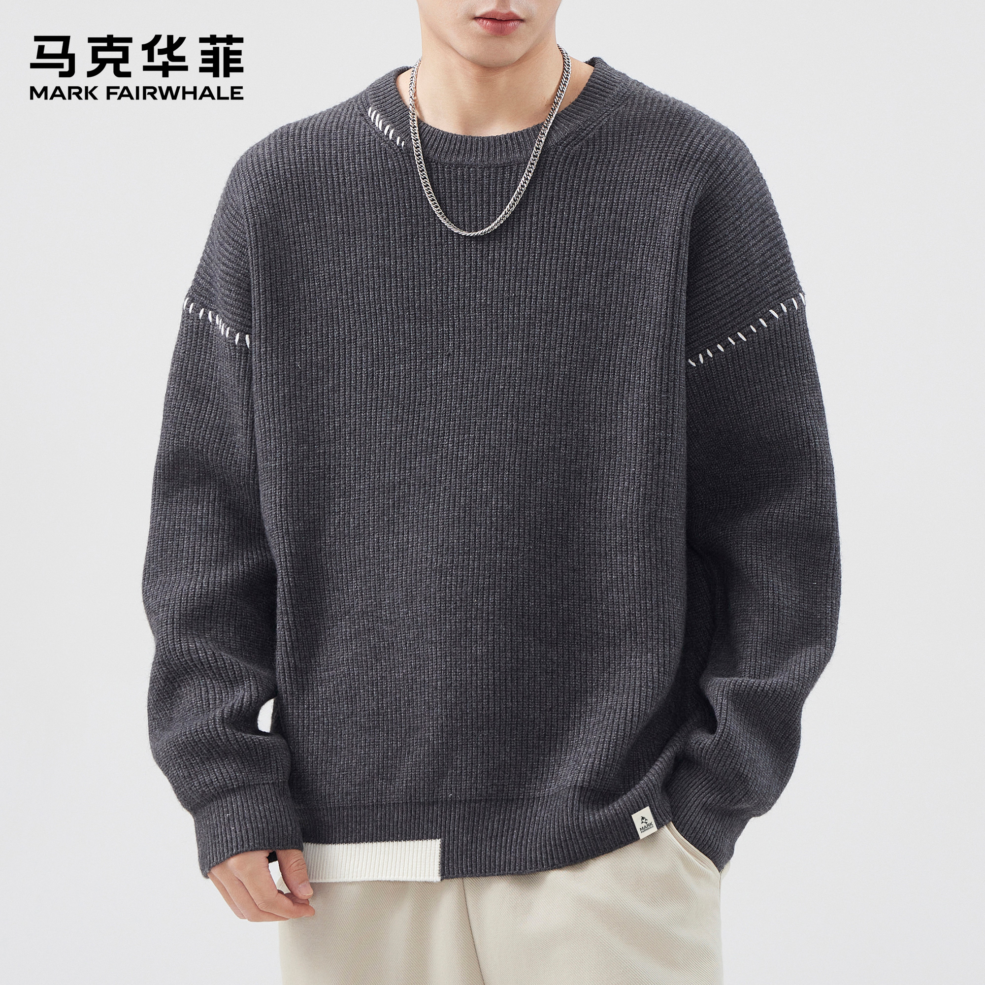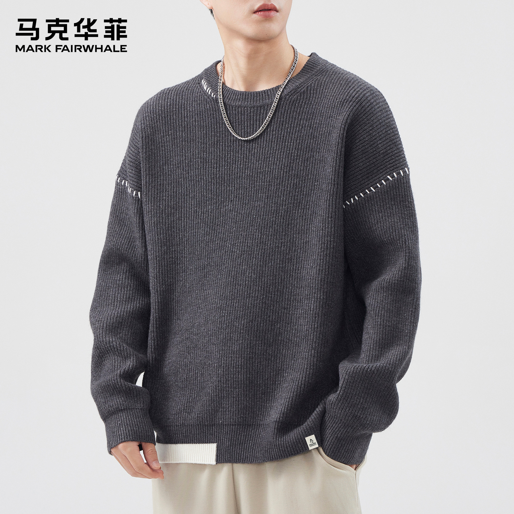 马克华菲毛衣男士秋冬潮牌复古重磅加厚保暖毛衫慵懒风圆领针织衫