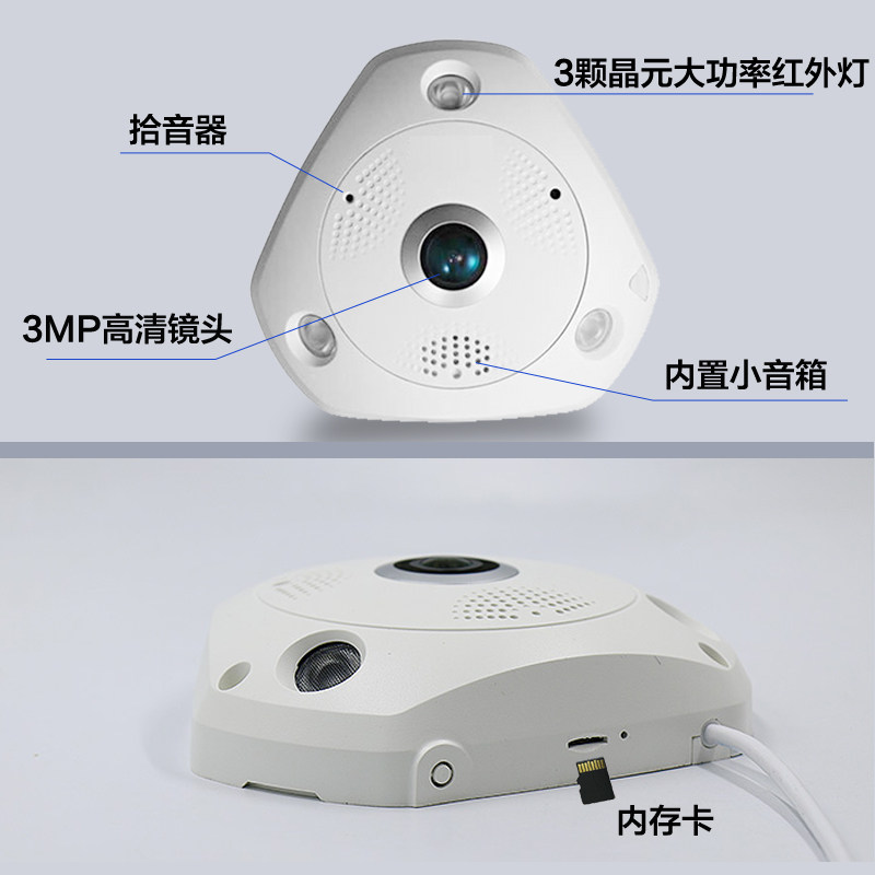 家用360度无线全景摄像头wifi手机远程 插卡一体摄像机无网可以用