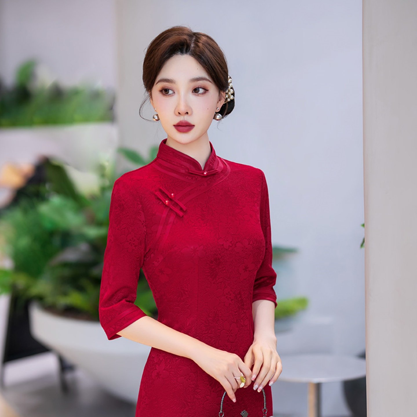 妈妈婚宴红色旗袍2025新款婚礼服