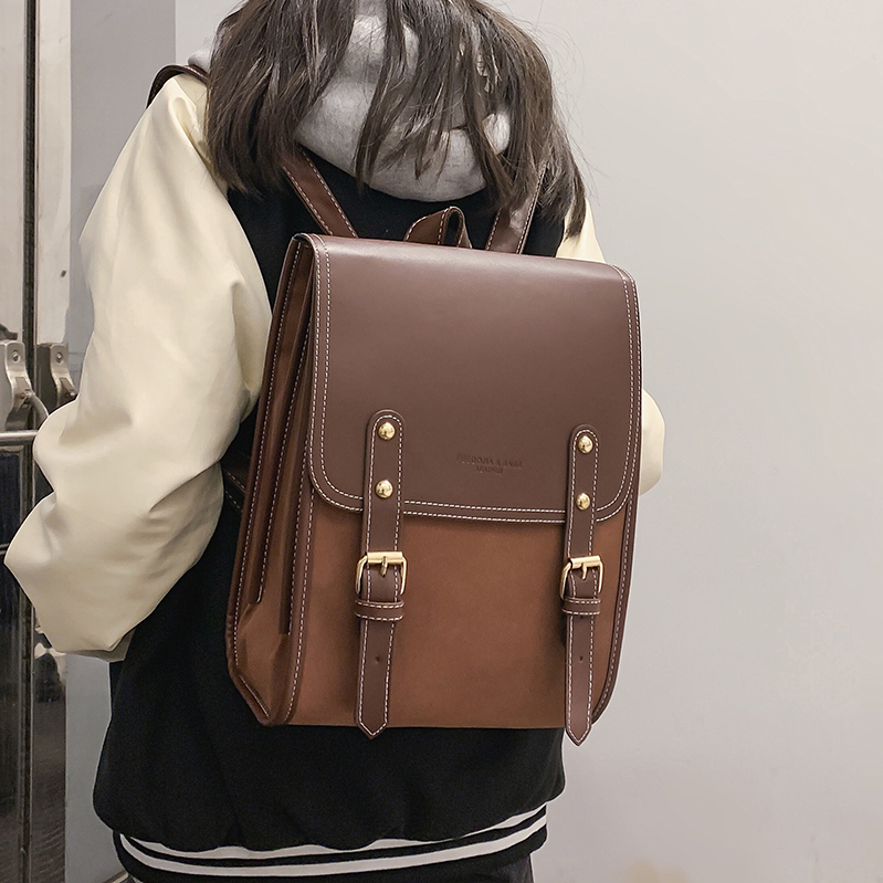 双肩包女2022新款韩版复古英伦学院风大学生书包简约百搭校园背包