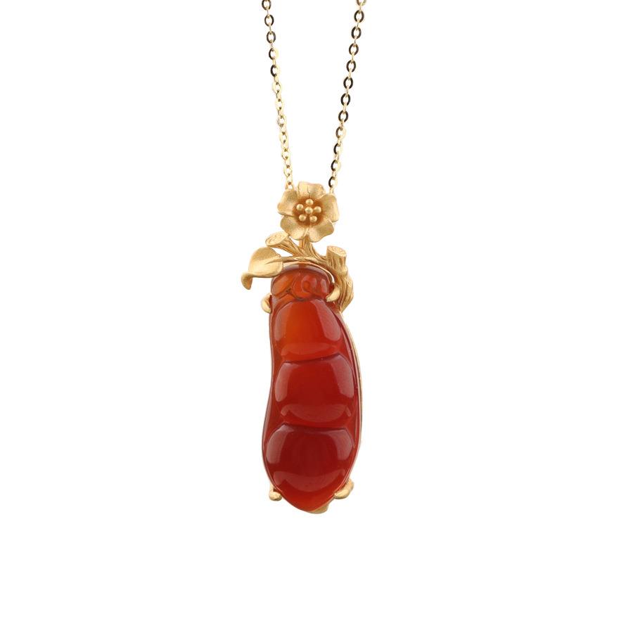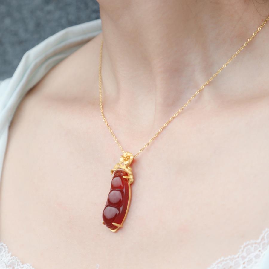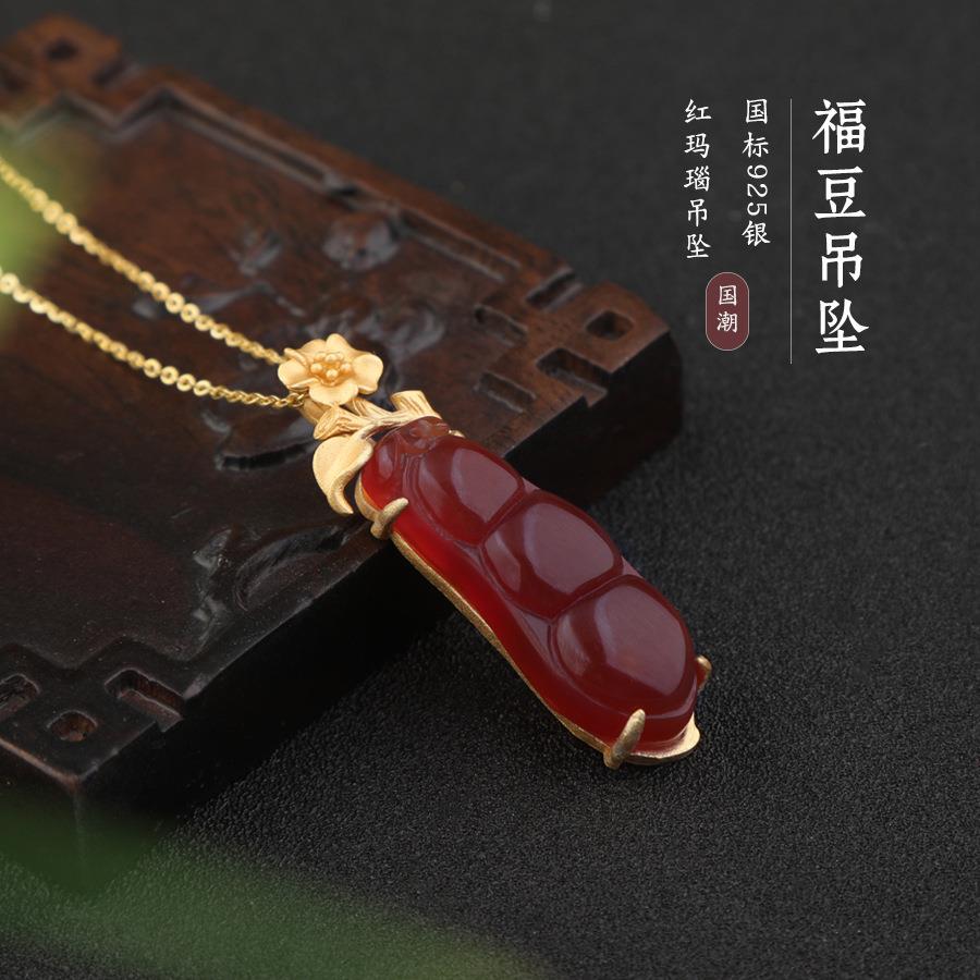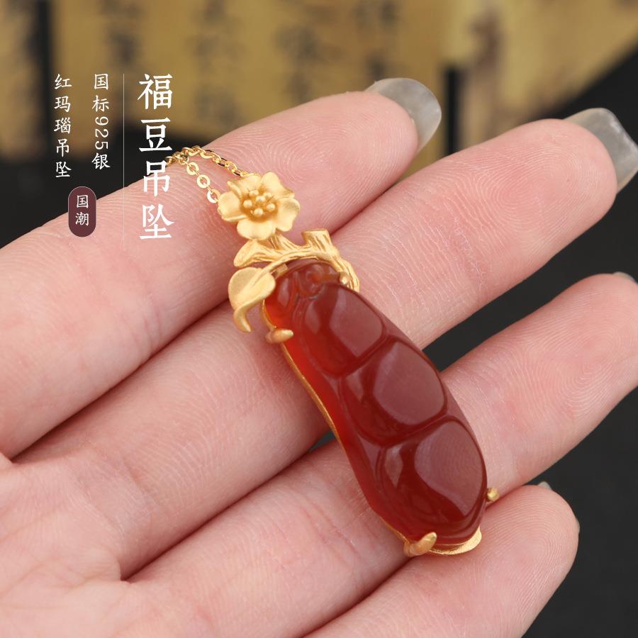 本命年书新中式冰红玉髓福豆玉石吊坠纯银红玛瑙吊坠女玄学能量饰