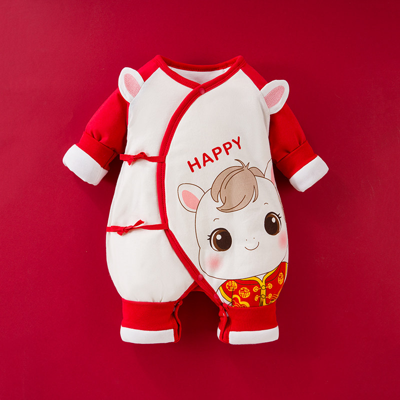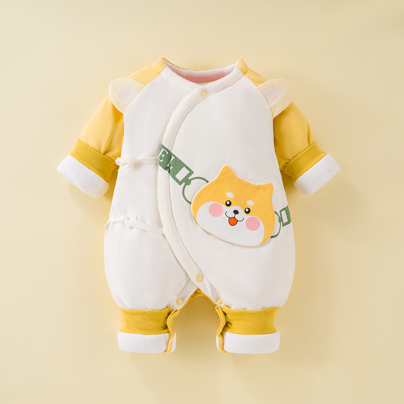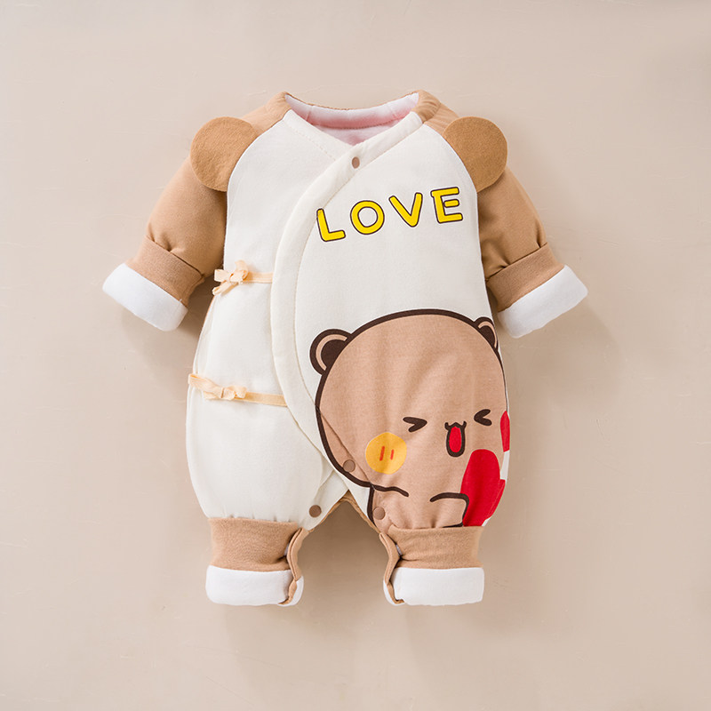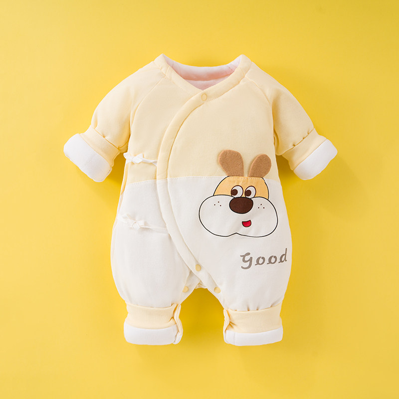 婴儿夹棉连体衣冬季女宝宝可爱公主纯棉服0-3个月6满月服幼儿冬装