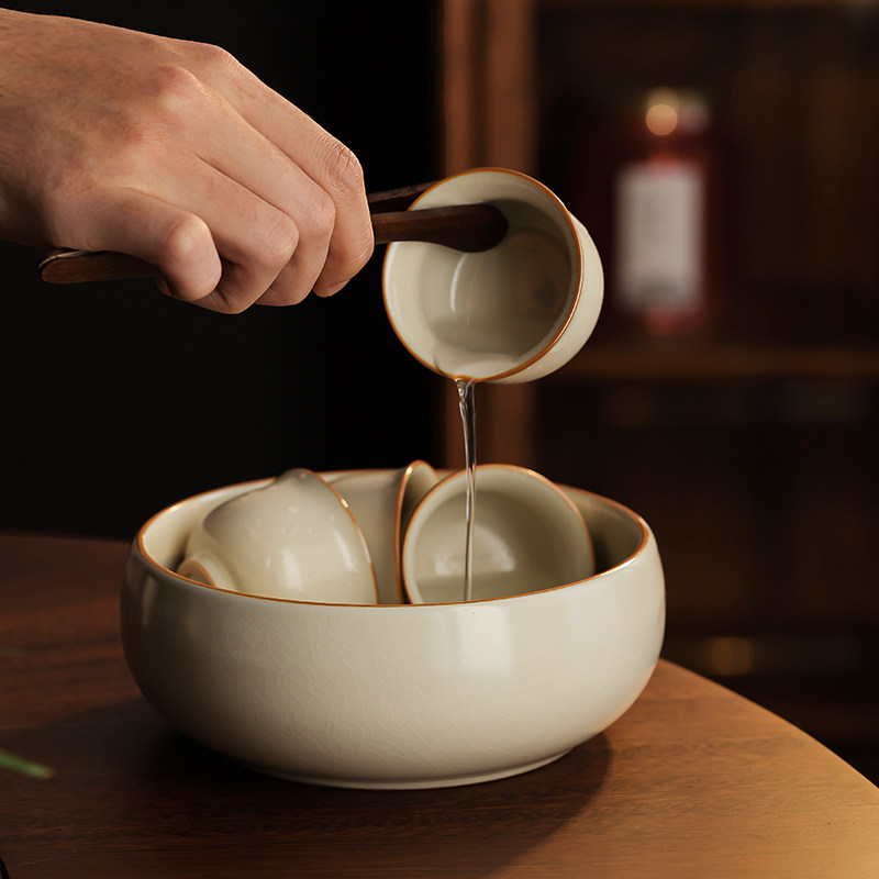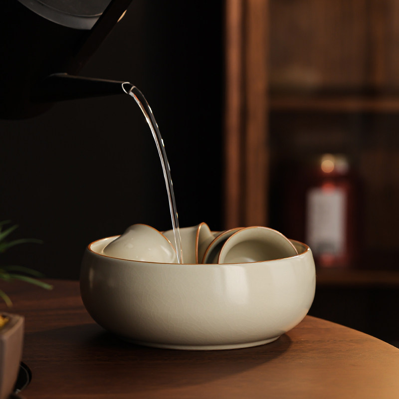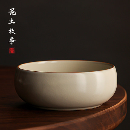 米黄汝窑茶洗杯洗水洗水盂茶渣缸陶瓷茶具配件洗茶器茶盆建水开片