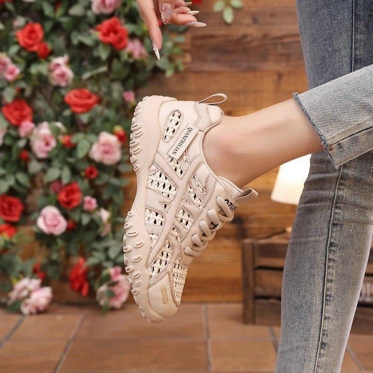 大东奥厚底德训鞋女2025新款爆款鞋子夏季休闲网鞋透气编织阿甘鞋