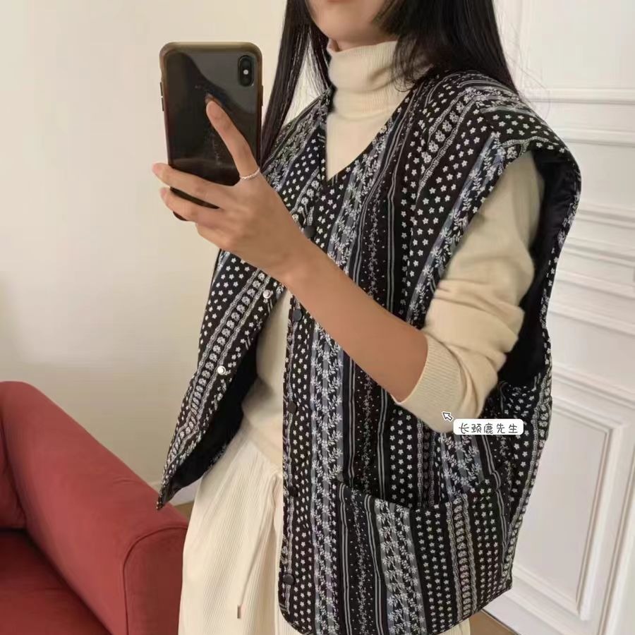 韩国chic2025秋冬大码女装图案背心棉服印花外套女秋冬装棉衣马甲