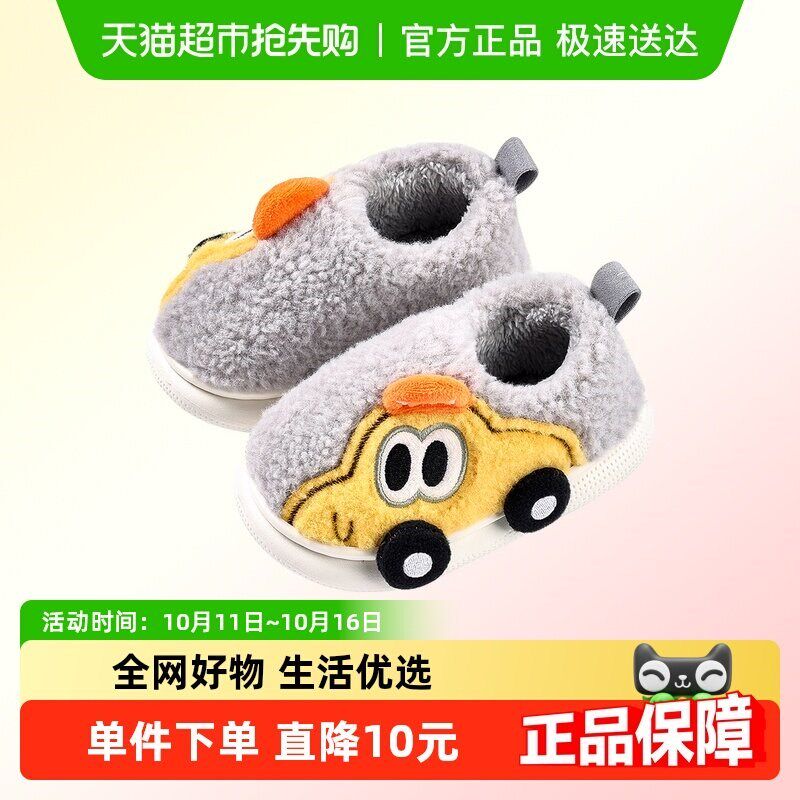 幸福玛丽儿童棉拖鞋女童男童冬季软底包跟加绒毛毛鞋卡通可爱棉鞋