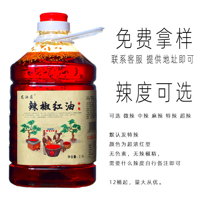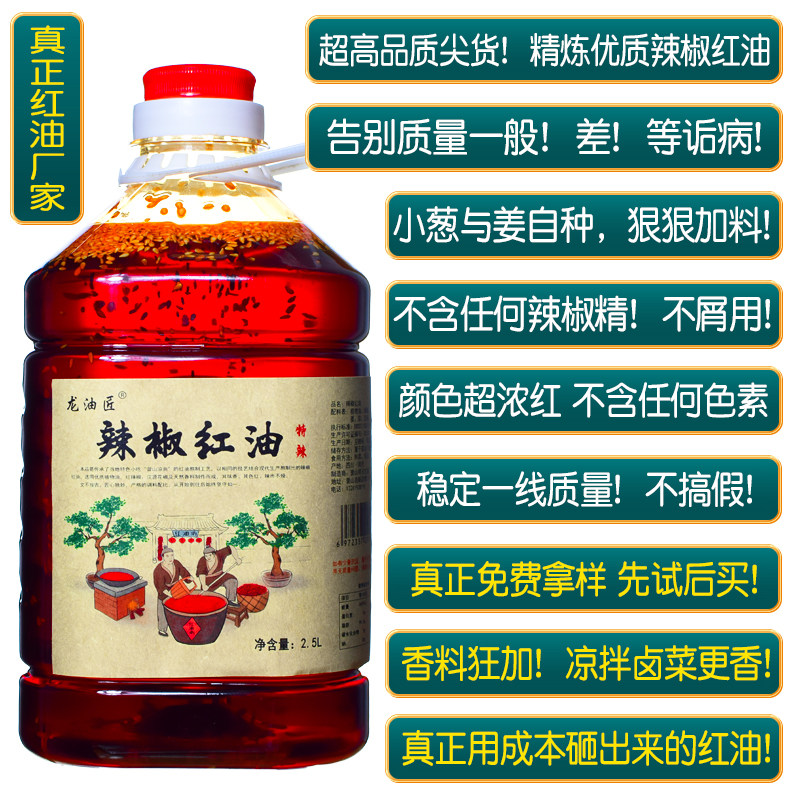 超浓红辣椒油香辣麻辣红油四川熬制油泼辣子凉拌火锅商用2.5L商用