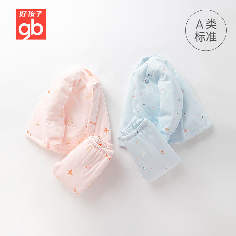 GB好孩子夹棉保暖儿童保暖内衣套装开扣秋衣秋裤家居服秋冬套装
