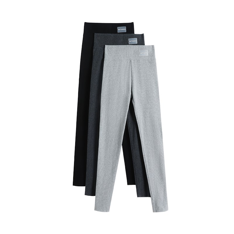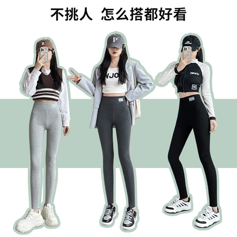纯棉打底裤女外穿春秋季薄款高腰紧身罗纹秋裤显瘦弹力大码九分裤