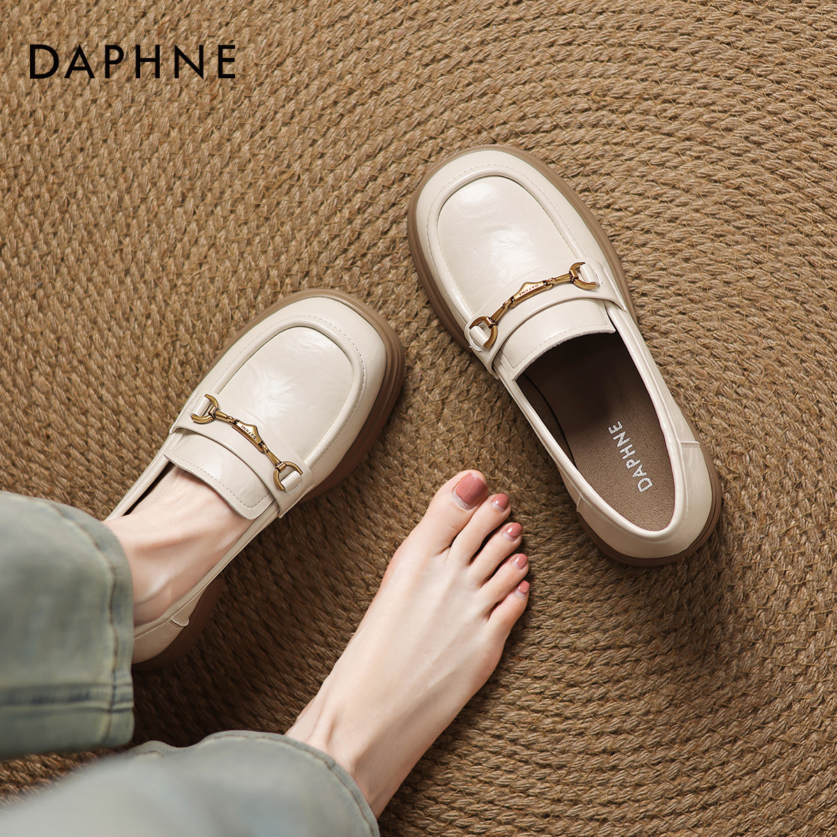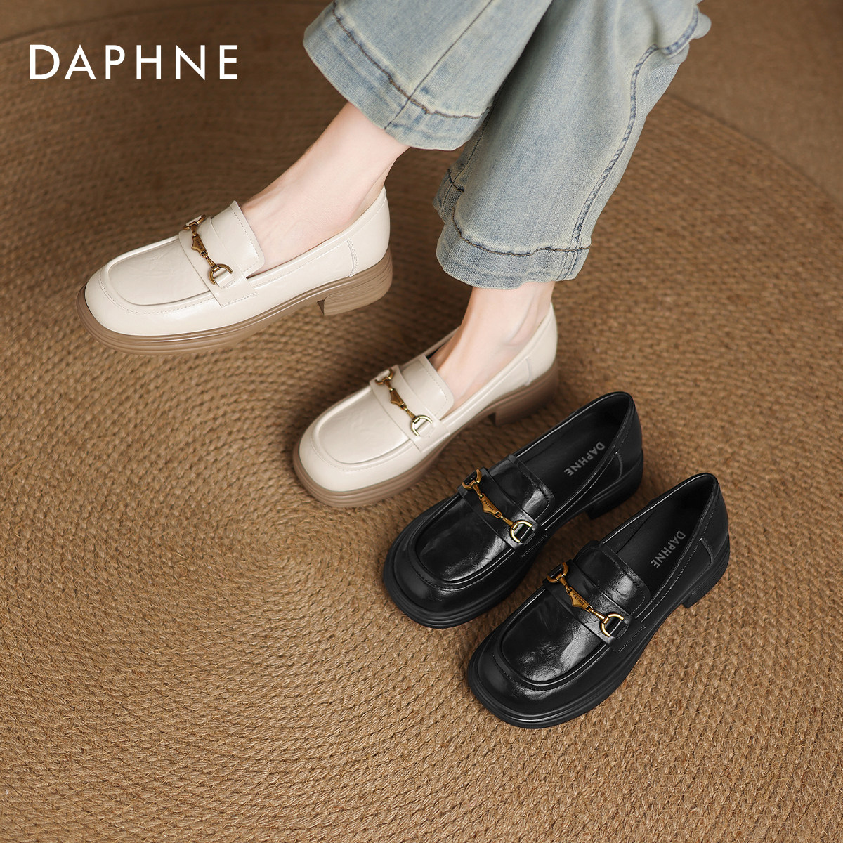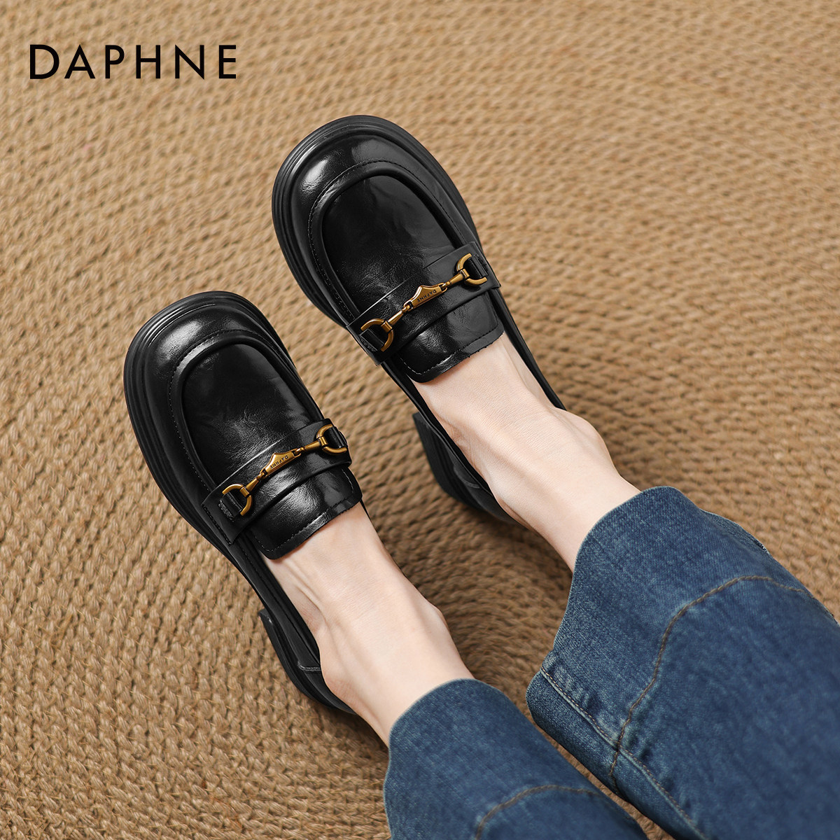 达芙妮厚底乐福鞋女英伦风小皮鞋