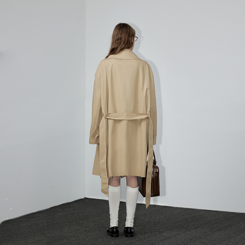 GREEN BELT复古气质中长款风衣女2024秋冬新款翻领双排扣宽松上衣