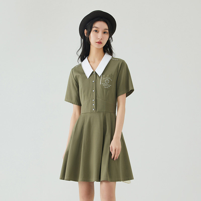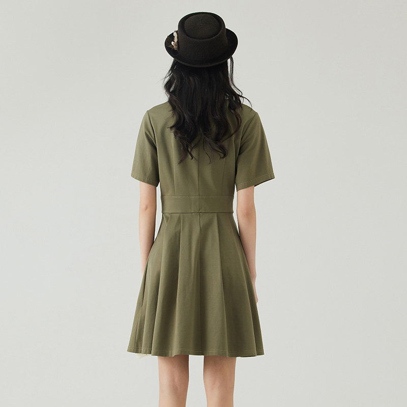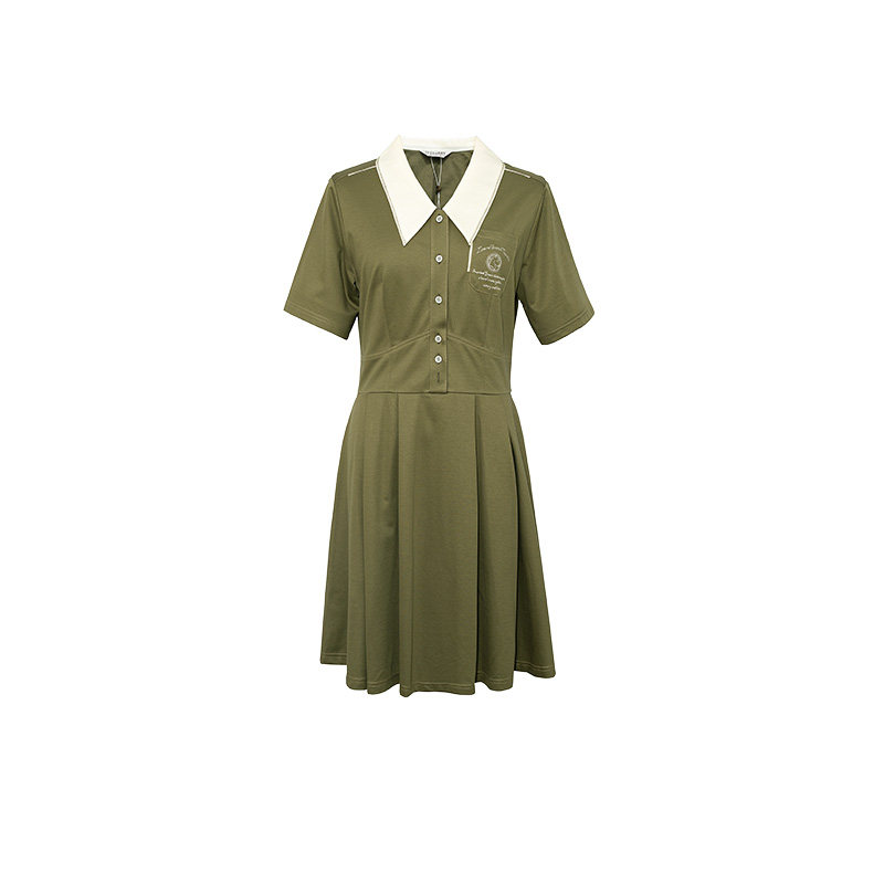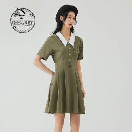 D-HARRY/迪哈利2023夏新款复古休闲军绿色POLO连衣裙DH232J96258D