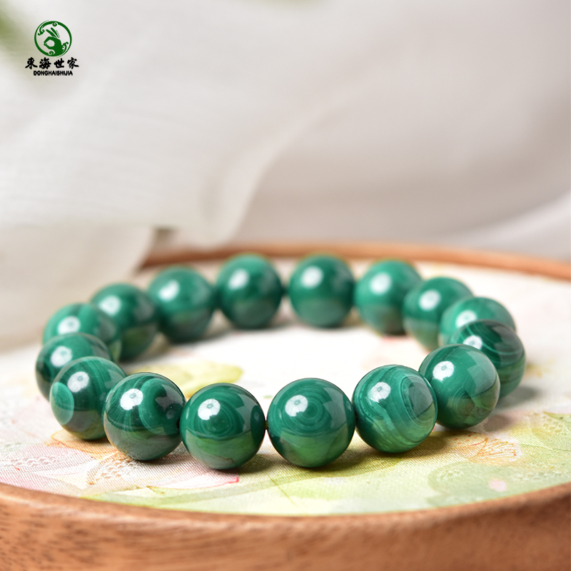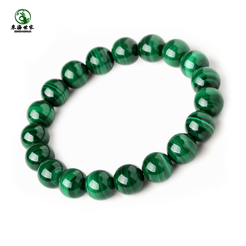孔雀石手链女男东海水晶玉石玉髓玛瑙手串散珠子翡翠色孔雀石手串