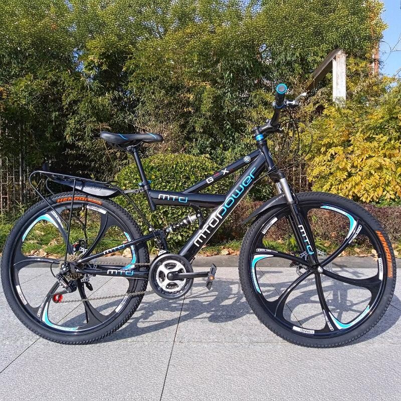 双减震山地自行车双碟刹带后座轻山地车变速男女单车学生越野赛车