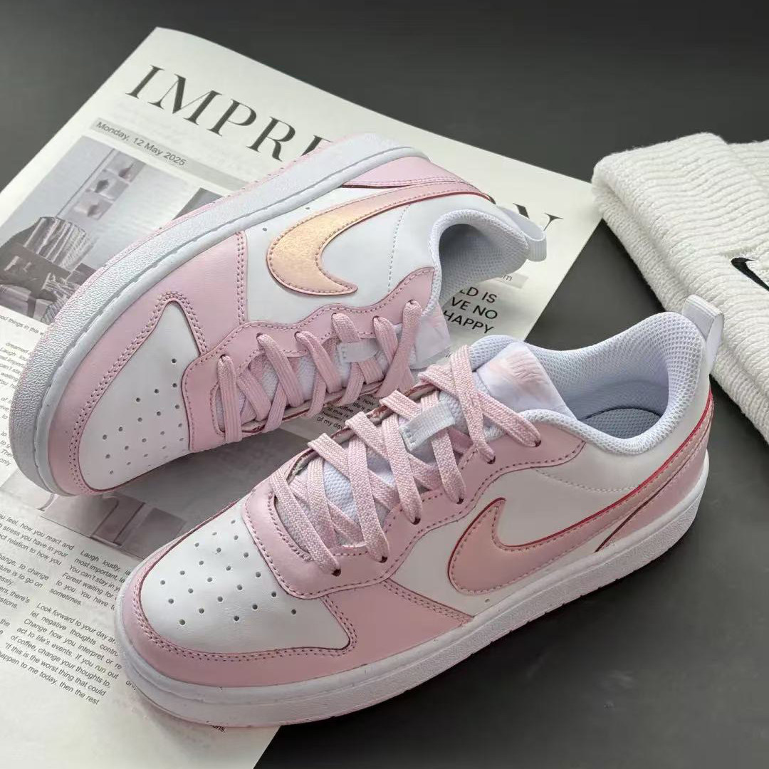 Nike Court Borough粉色耐克低帮耐磨休闲板鞋大童女子DQ0492-100