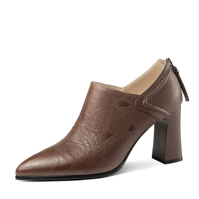 银泰百货高跟鞋女粗跟尖头小皮鞋
