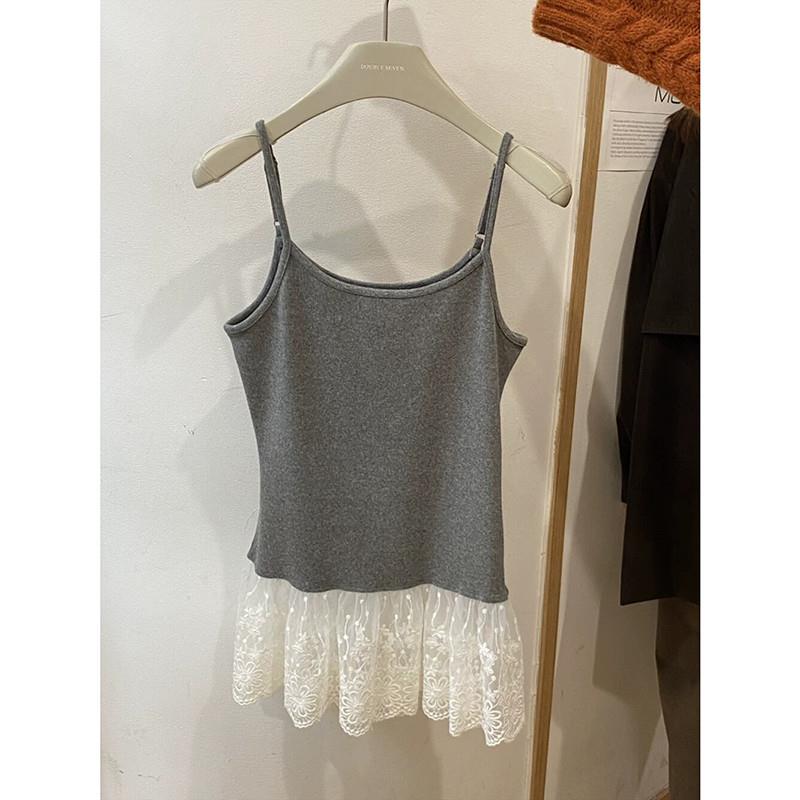 2025秋冬新款韩版初雪花边蕾丝吊带内搭秋冬新款白色甜美打底背心