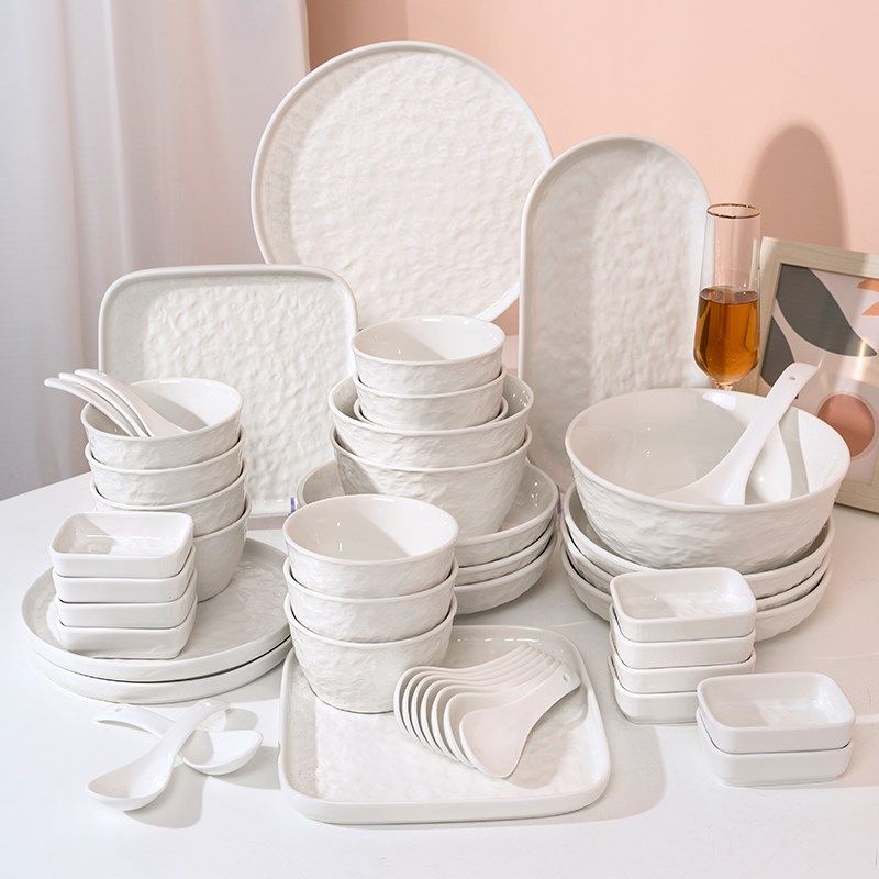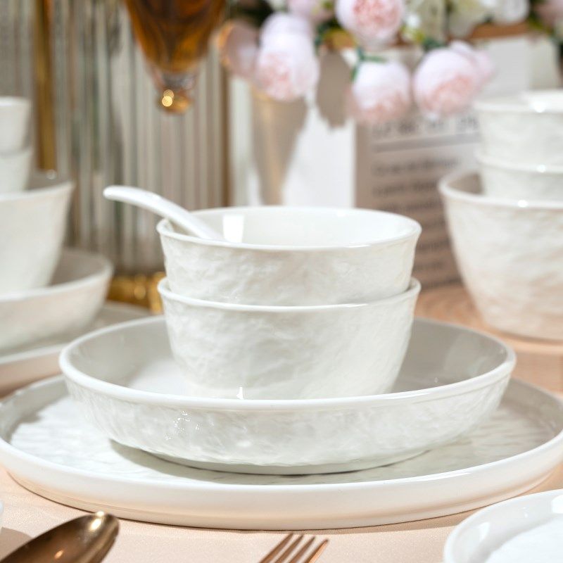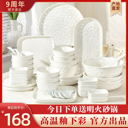 高温釉下彩2024碗碟套装轻奢餐具白瓷陶瓷器筷高级感乔迁新居饭碗