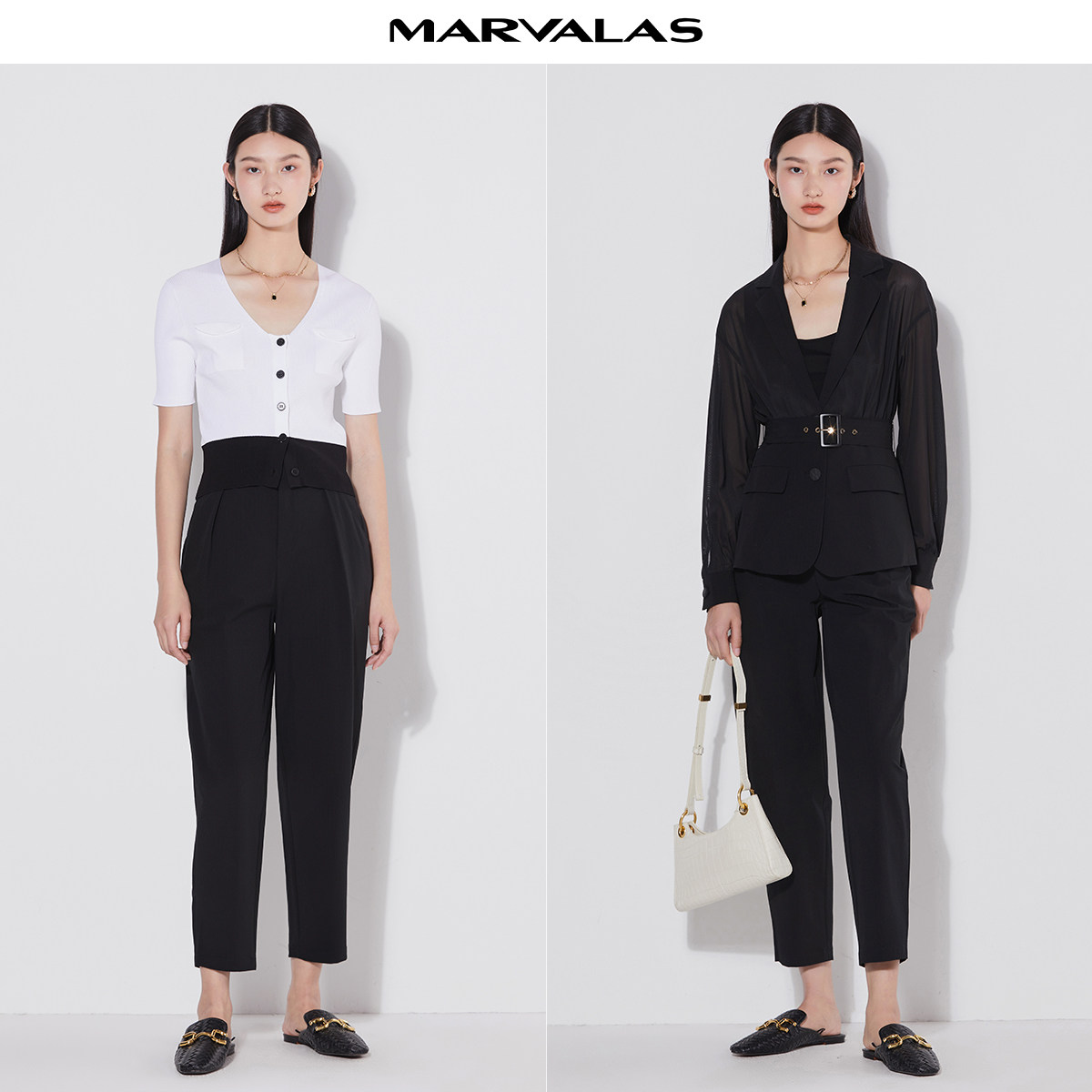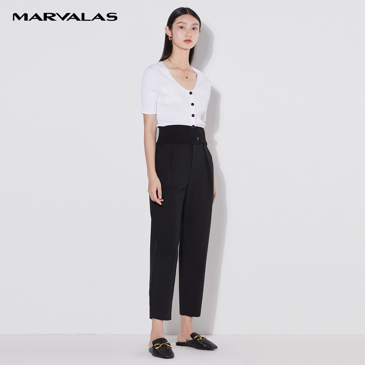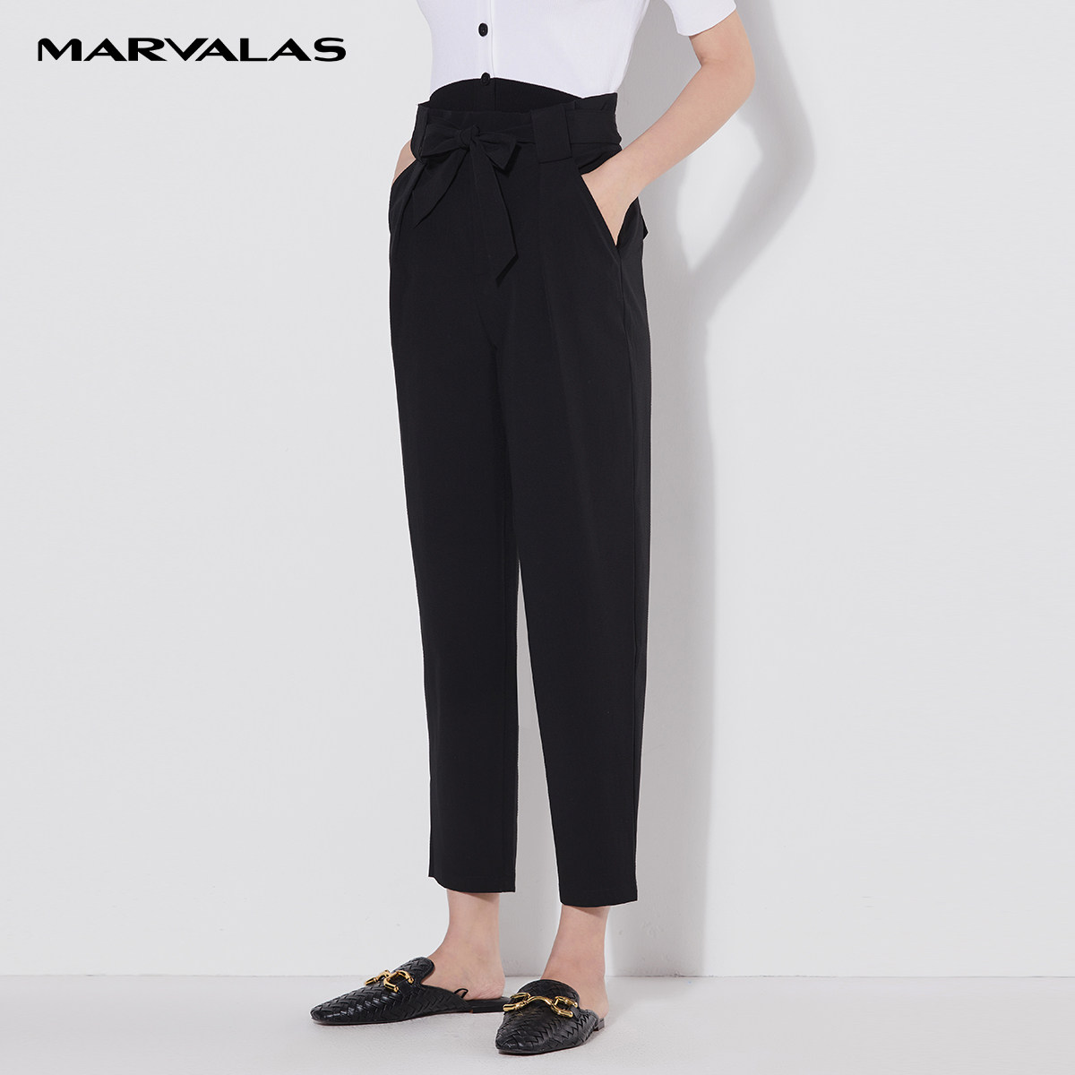 曼德诗别致哈伦裤女2026夏薄款九分裤造型感腰头舒适直筒裤西装裤