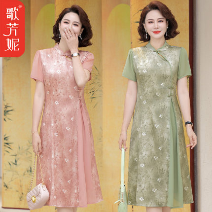 2025新款中老年贵夫人气质长裙改良旗袍裙子妈妈夏装洋气连衣裙女