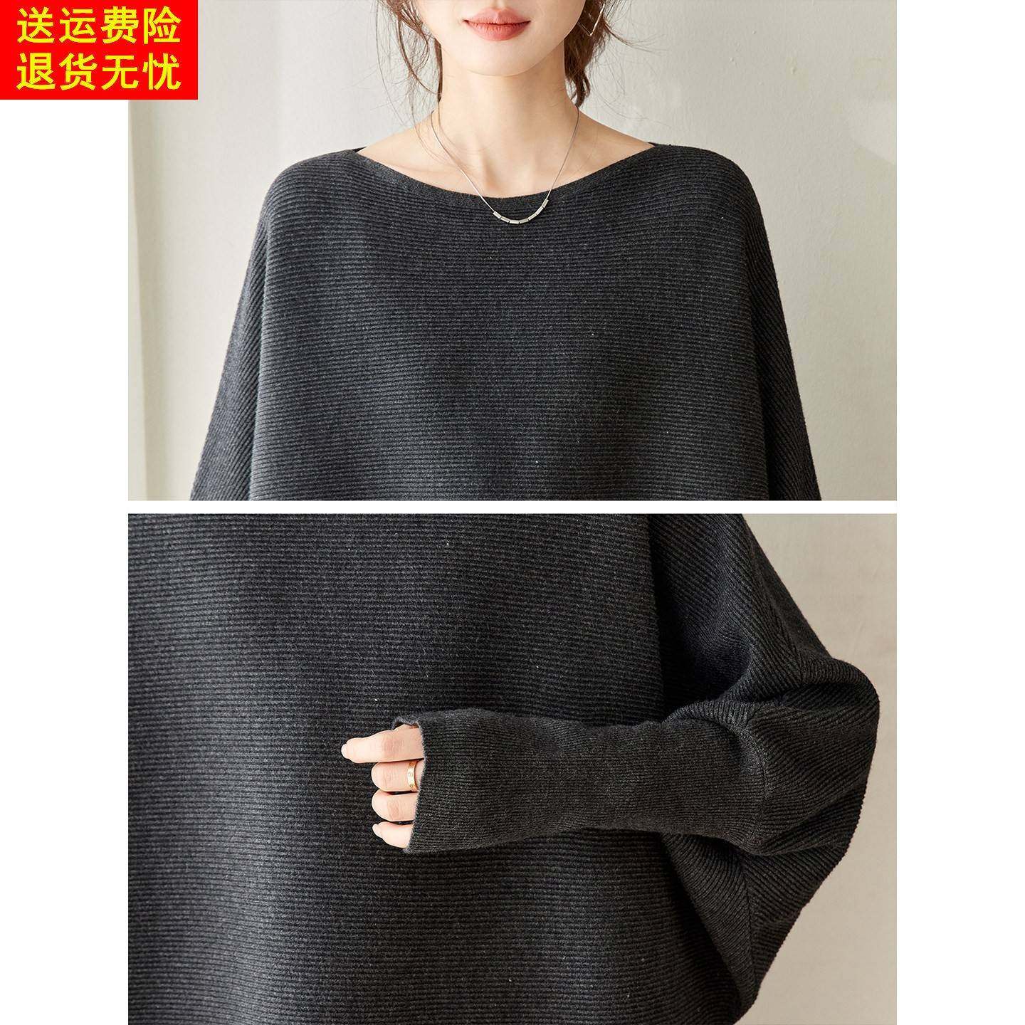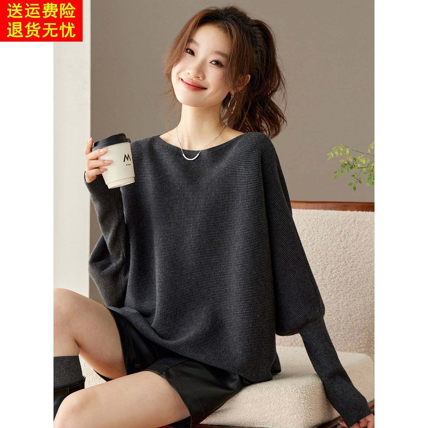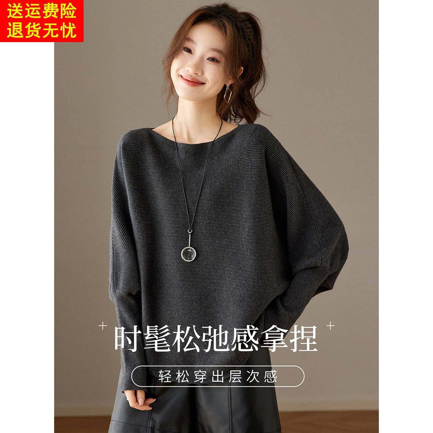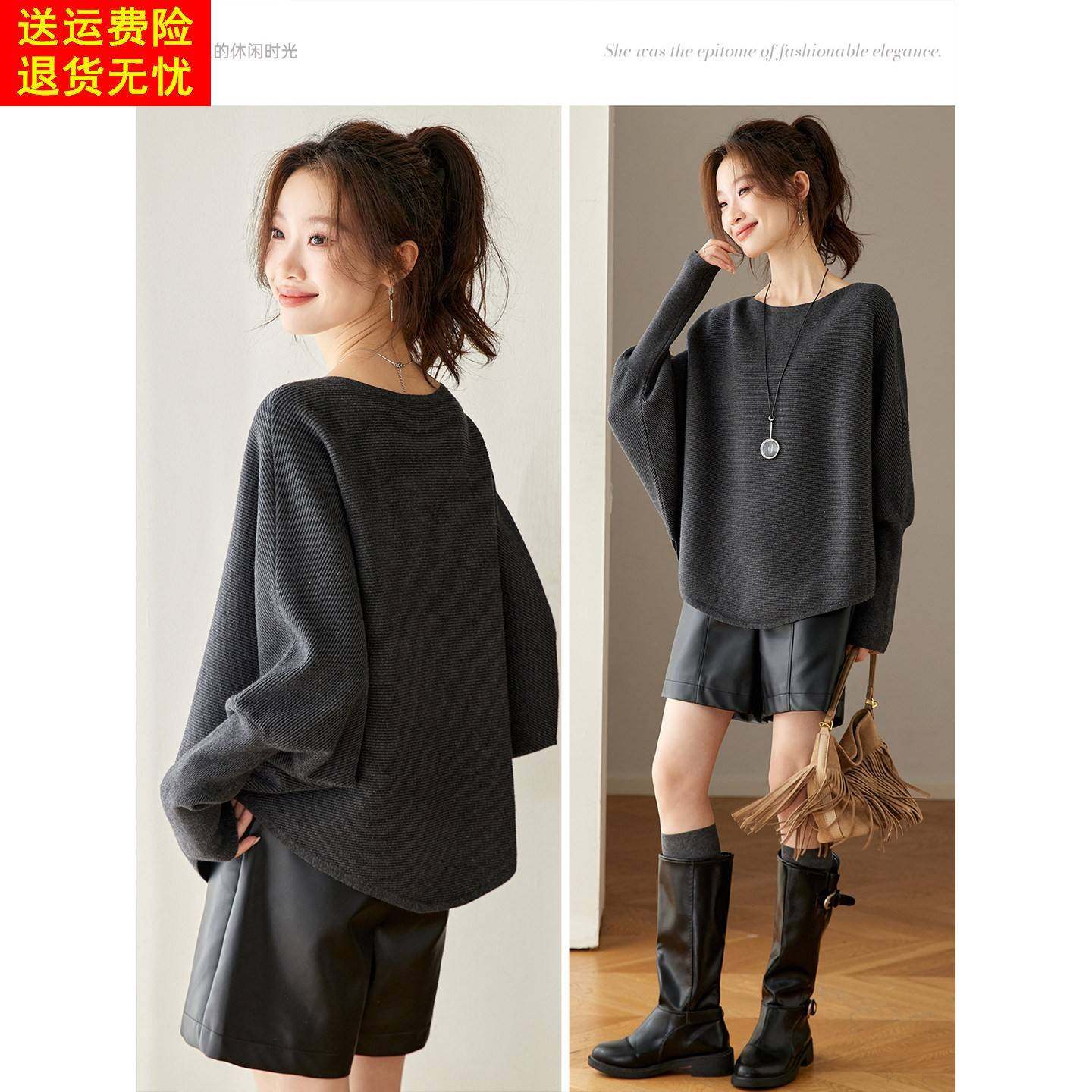 高级感气质灰色宽松遮肚子蝙蝠袖针织衫上衣女秋冬季外穿套头毛衣
