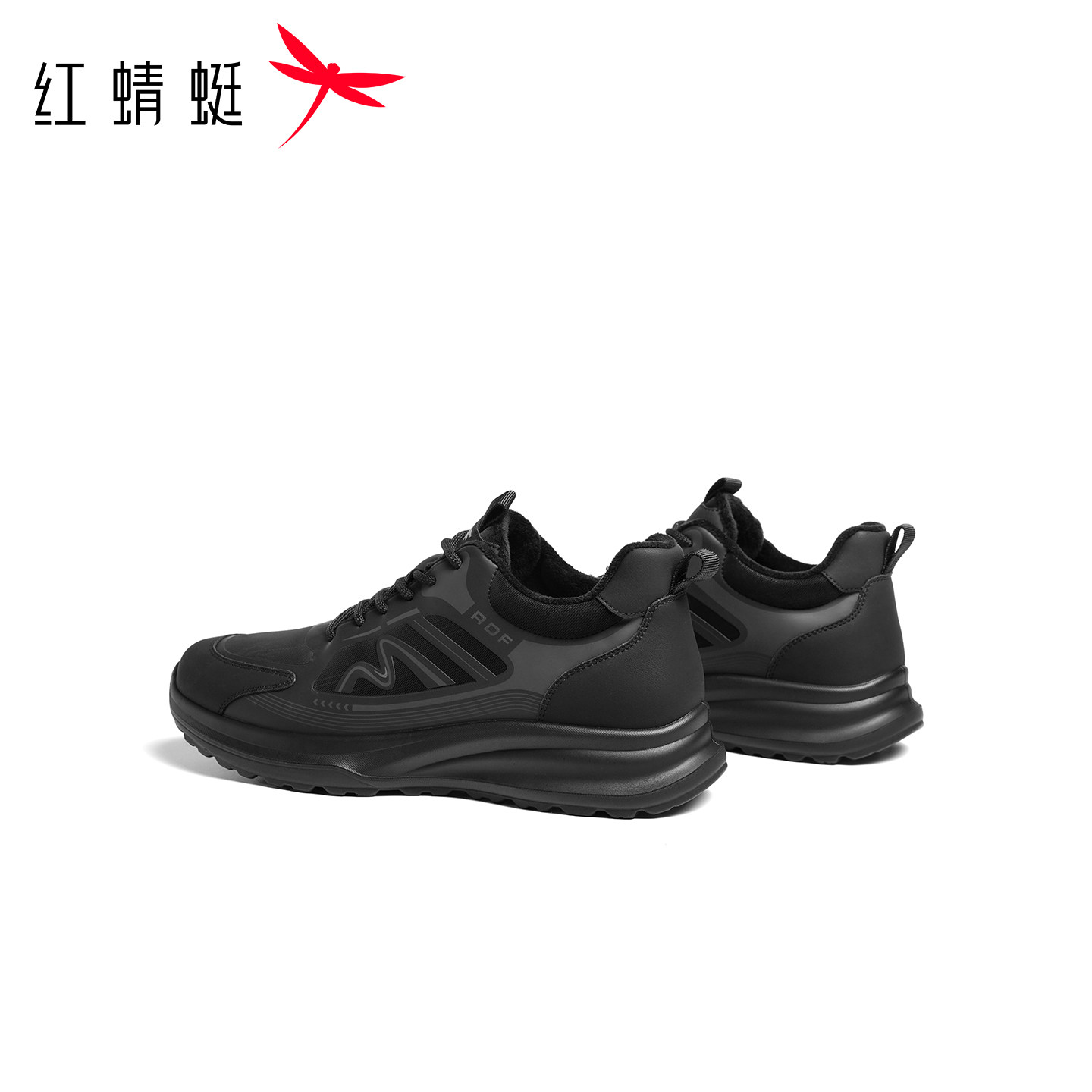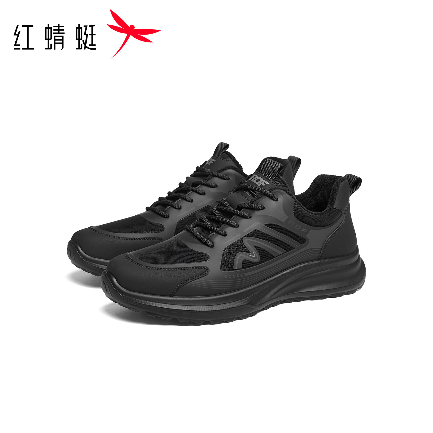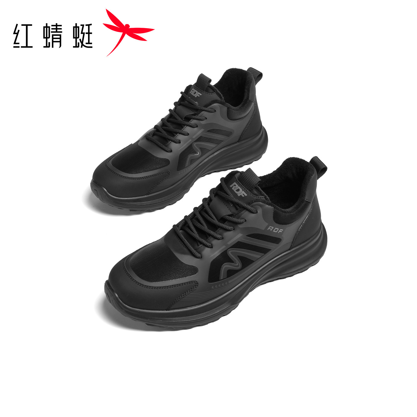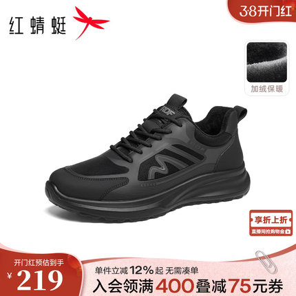 红蜻蜓网面鞋秋冬新款男鞋厚底系带时尚休闲鞋加绒保暖爸爸棉鞋男