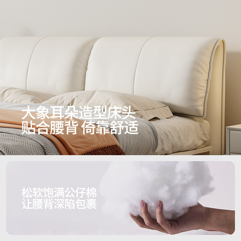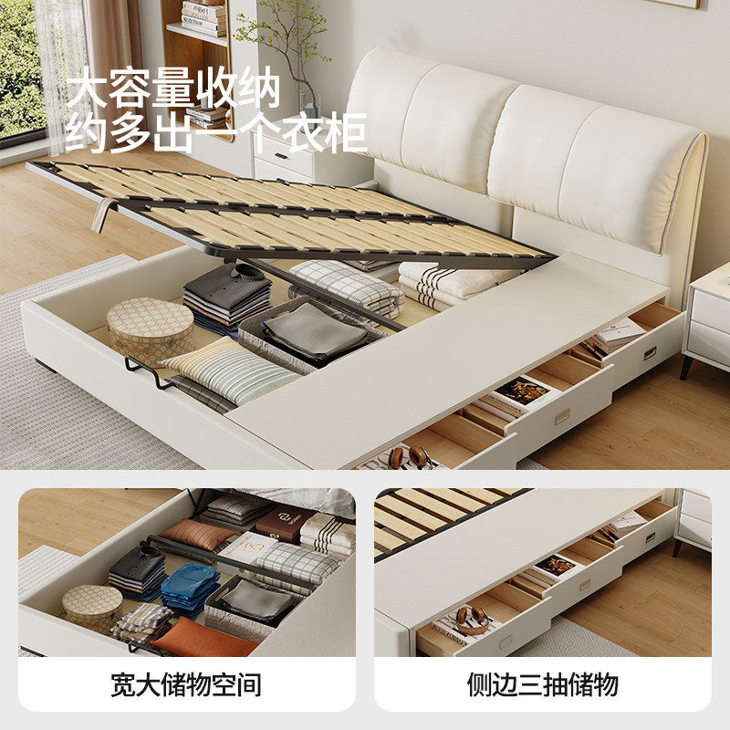 喜临门政府补贴大象耳朵真皮床奶油风收纳抽屉高箱储物现代简约主