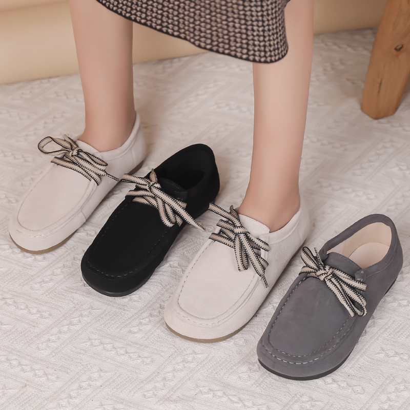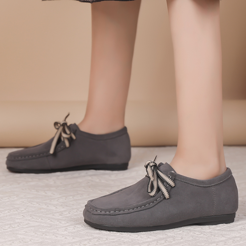 真皮平底单鞋2025春秋休闲软底妈妈鞋大码女鞋磨砂皮脚肥深口皮鞋