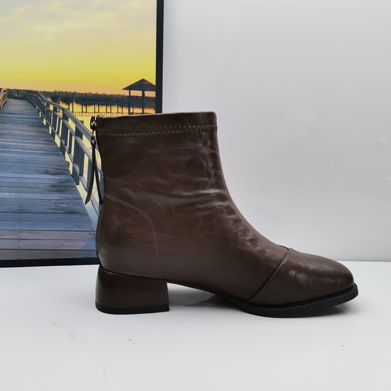 工厂断码2025新款秋季真皮女鞋方头粗跟短靴女羊皮时装靴女靴子