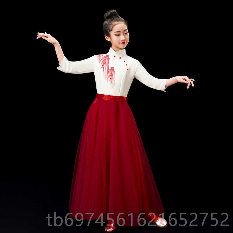 新款大合唱出服六一男中山装演儿童钢演奏琴礼服裙女童公主裙中国