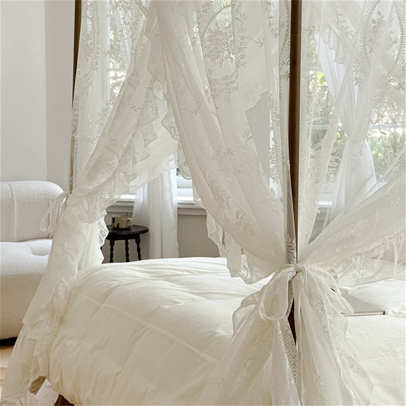 家用高端宫廷落地式白色蕾丝蚊帐三开门加厚加密公主风帐纱带支架