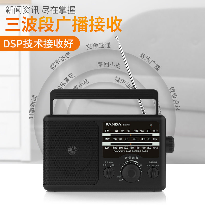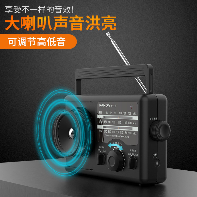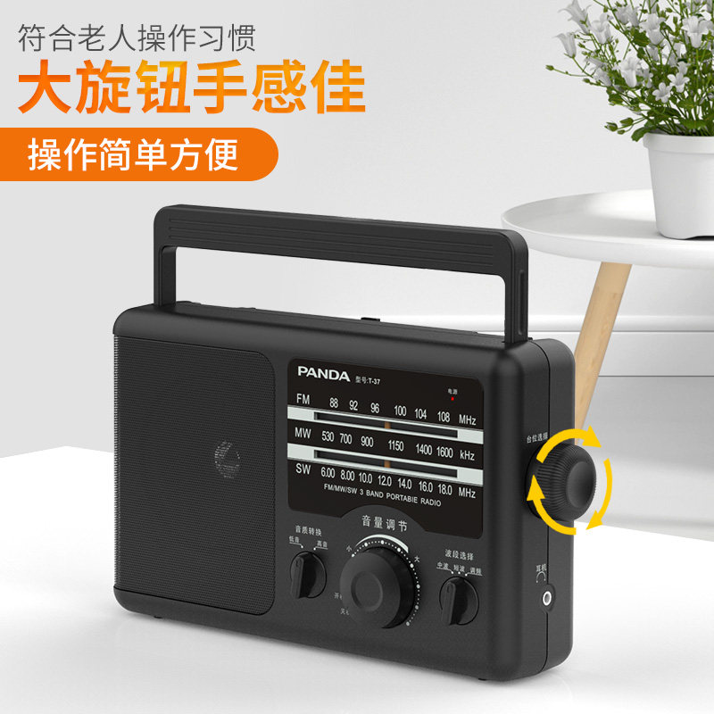 熊猫T-37老人收音机全波段便携式老年人锂电池充电台式广播半导体