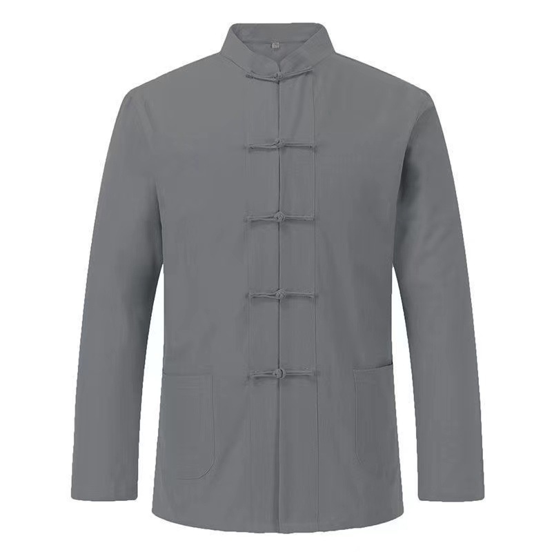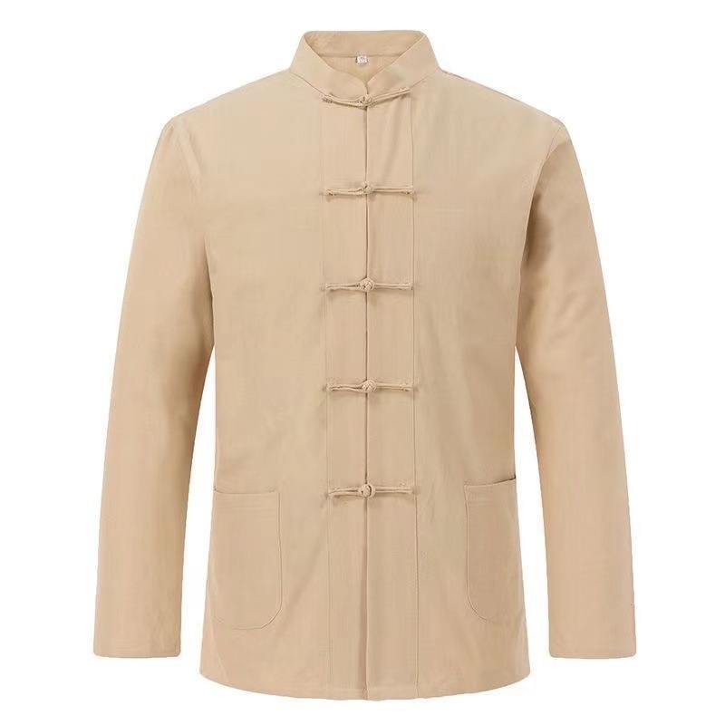 2024新款中国风男装棉麻长袖衬衫男士宽松复古中式盘扣衬衣男