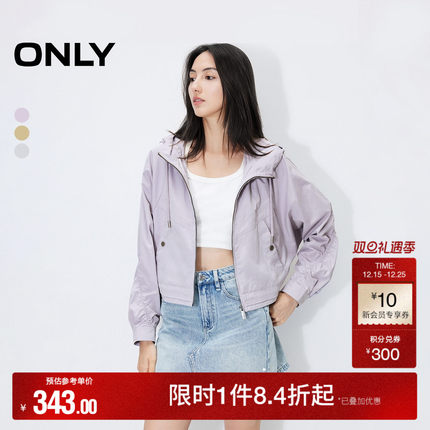 【ONLY奥莱】秋冬机能风宽松插肩袖抽绳连帽风衣外套女