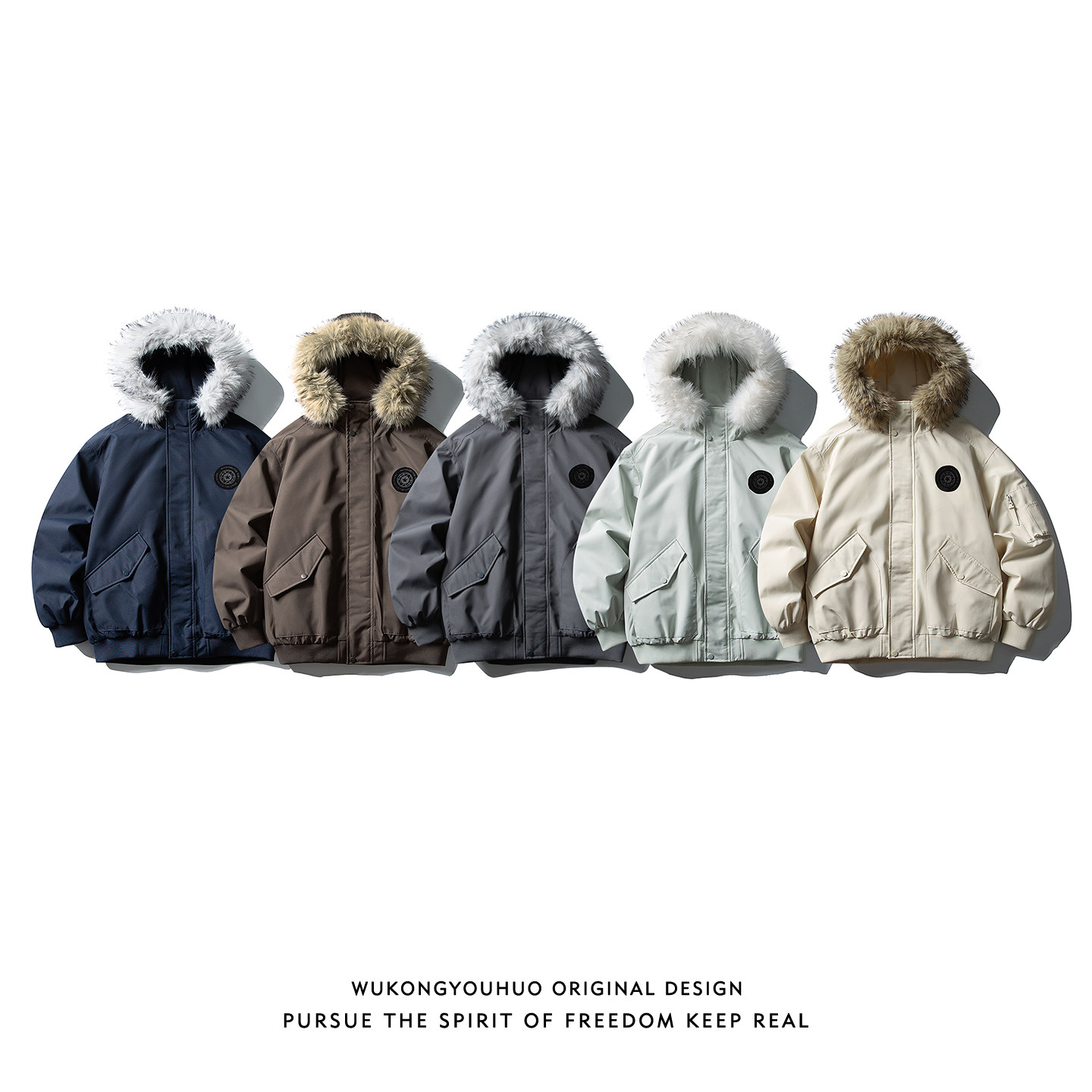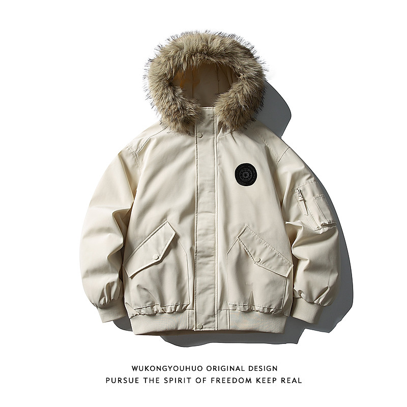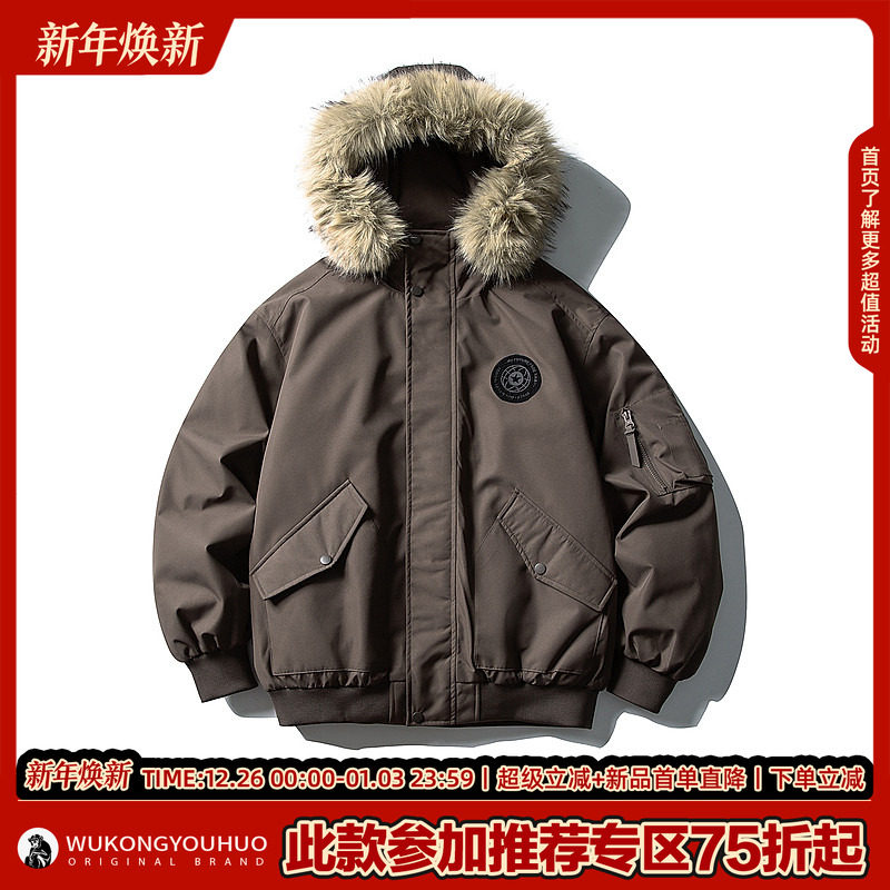 悟空有货冬季90绒毛领连帽羽绒服男女潮牌情侣防寒保暖百搭派克服
